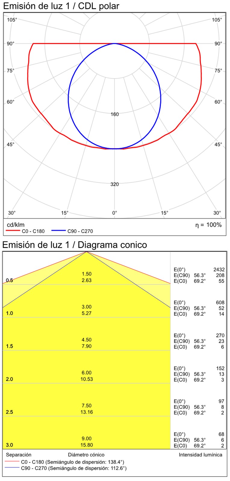 Especificaciones y datos fotométricos