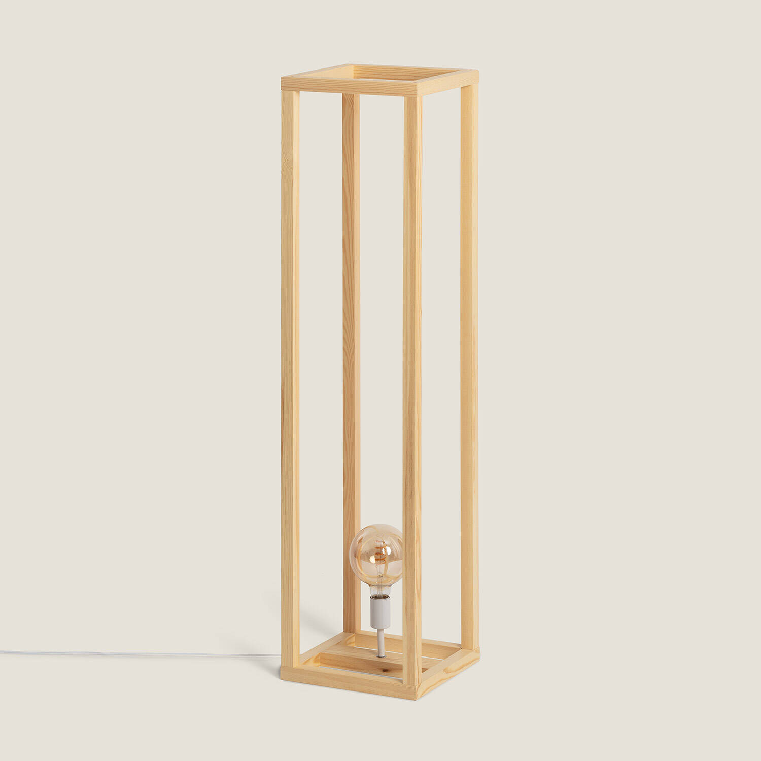 La lámpara de pie de madera Coba destaca por su diseño minimalista y natural, ideal para ambientes interiores que buscan calidez y estilo. Su estructura abierta en forma de cubo está fabricada en madera natural, aportando un toque elegante y acogedor a cualquier estancia. Compatible con bombillas E27 de hasta 40 W, ofrece versatilidad para elegir la iluminación que prefieras. Su protección IP20 garantiza seguridad en espacios interiores, y su funcionamiento es fiable en temperaturas desde -20 °C hasta 50 °C. Además, cuenta con certificaciones CE, RoHS y UKCA, asegurando calidad y cumplimiento normativo. Con un diseño sencillo y funcional, la lámpara Coba es perfecta para salones o dormitorios que valoran la estética natural y moderna.