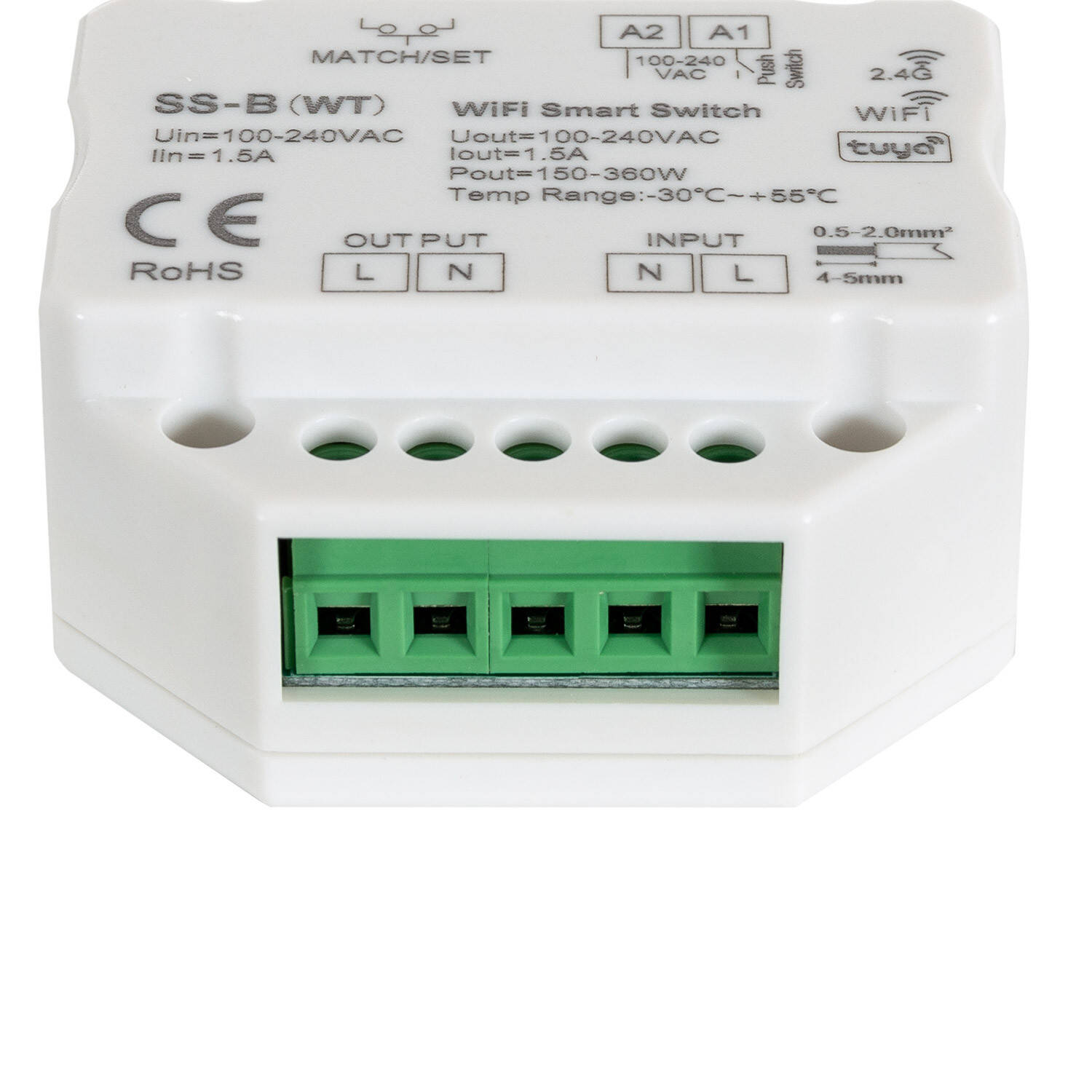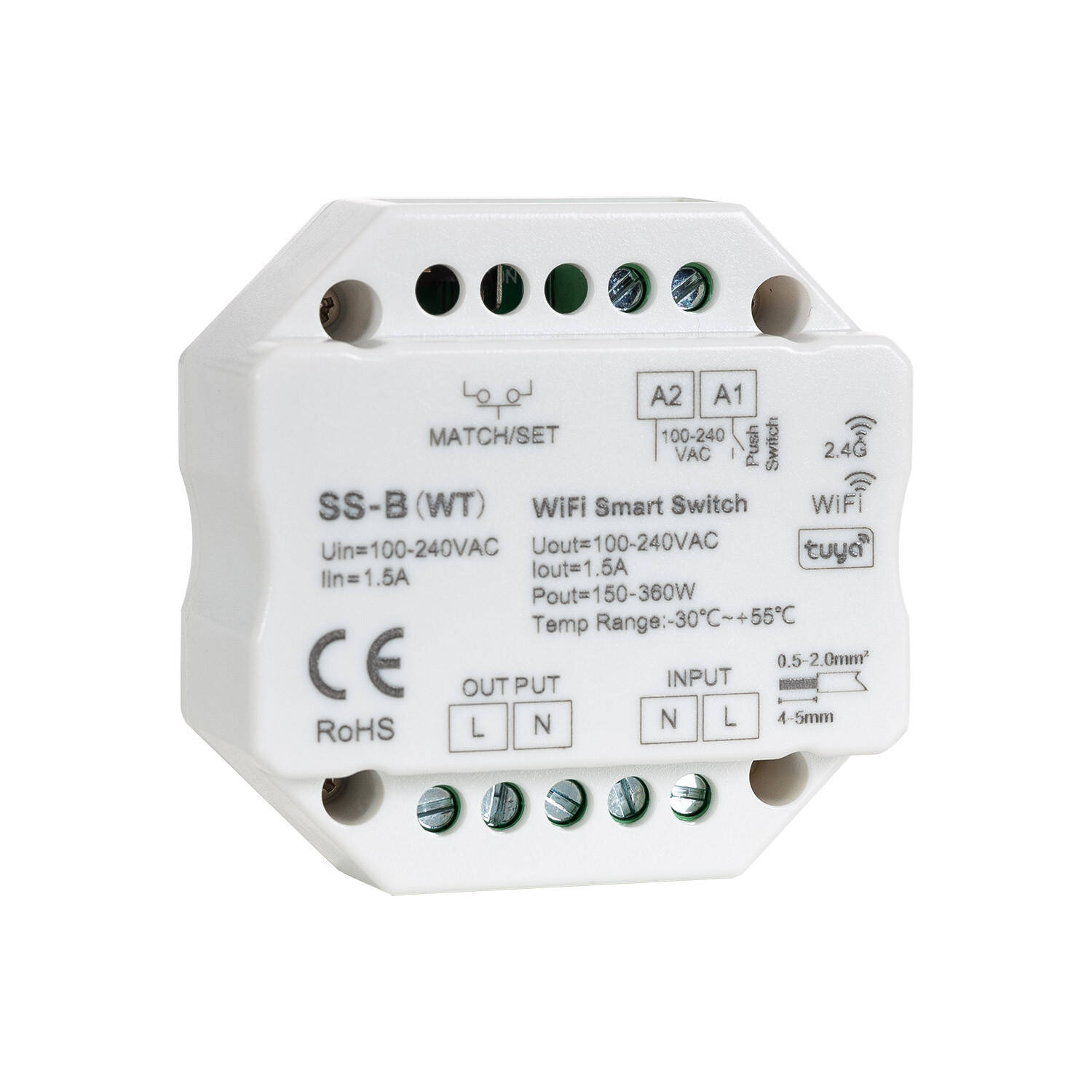 El Interruptor WiFi RF Compatible con Pulsador es un dispositivo compacto y funcional diseñado para controlar la iluminación en interiores de forma inteligente. Con una potencia máxima de 360 W y una intensidad de corriente de 1,5 A, permite una conexión segura y eficiente a redes WiFi de 2,4 GHz mediante la plataforma Tuya. Fabricado en material PC de color blanco, cuenta con certificaciones CE, RoHS y UKCA, garantizando calidad y seguridad. Su diseño incluye una única tecla pulsadora y protección IP20, ideal para instalaciones estándar. Compatible con pulsadores físicos, ofrece control remoto y automatización en un rango de tensión de 220-240 V AC, con una temperatura de funcionamiento entre -30 °C y +55 °C. Incluye garantía de 3 años, asegurando durabilidad y confianza.