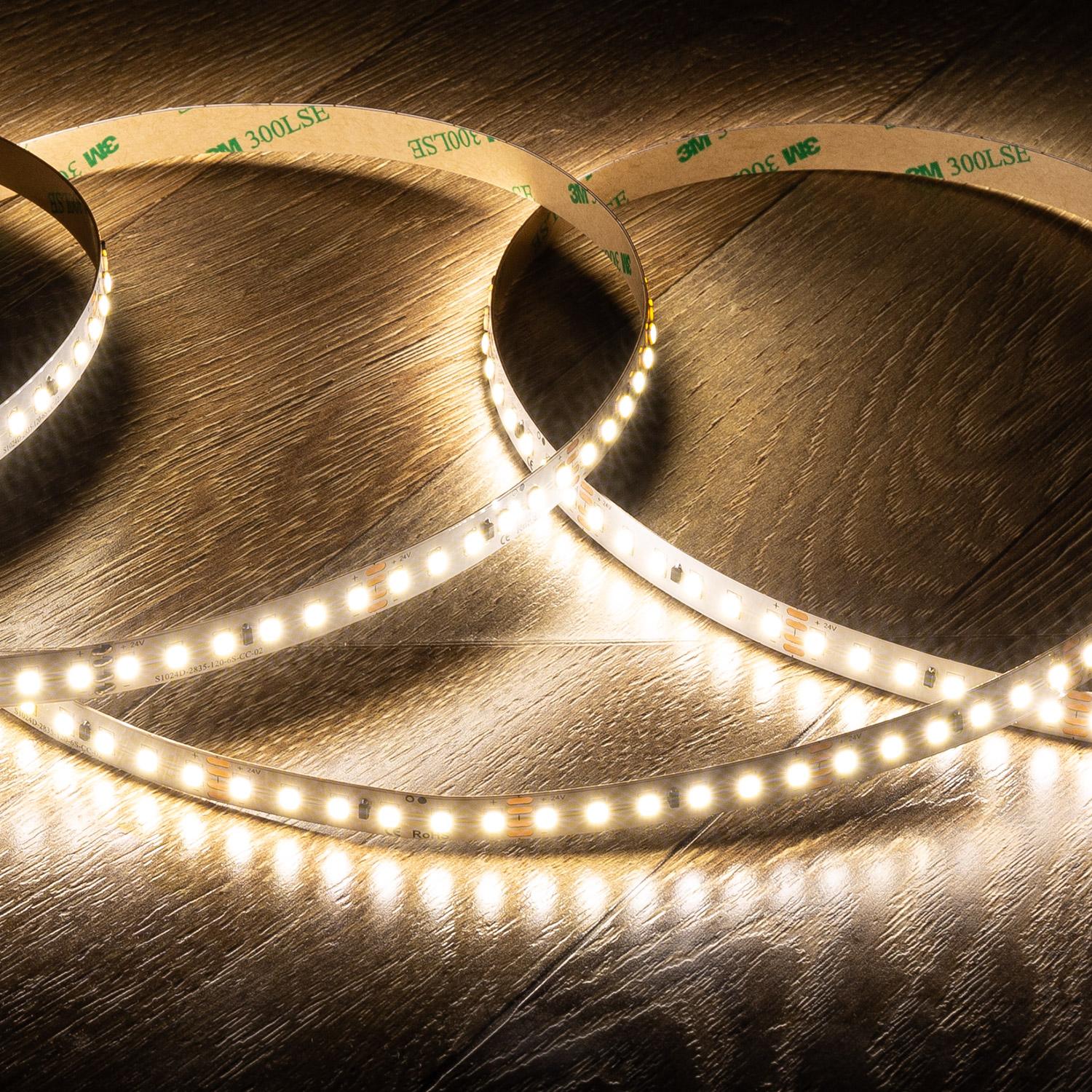 Tira LED 24V SMD 120 LED/m Bobina 20m Larga Distancia 10W/m 1250lm/m Ancho 10mm Corte 5cm IP20