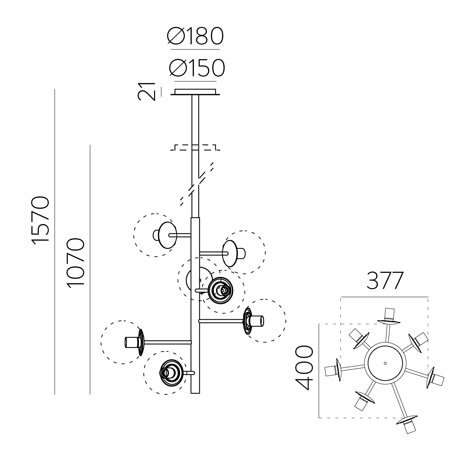 Parma Colgante Negro Mate Liso, LED E27 7x15W, CL.I, Sin tulipa