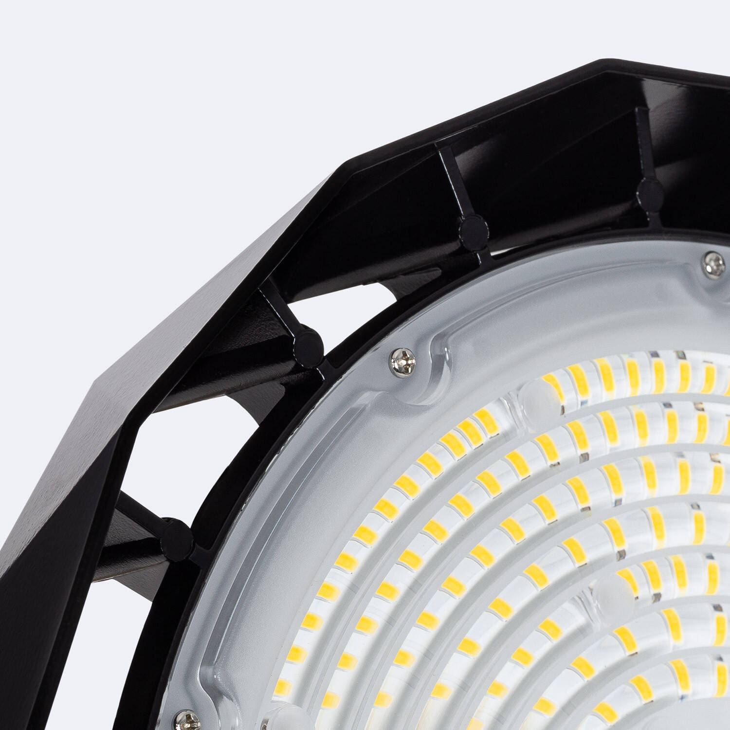 La Campana LED Industrial UFO 200W de PHILIPS Xitanium es una solución avanzada para iluminación profesional, que destaca por su alta eficiencia lumínica de 200 lm/W y una potencia de 200W, generando 40,000 lúmenes con luz blanco neutro (4000K). Su diseño robusto con protección IP65 e IK09 garantiza resistencia al polvo, agua e impactos, ideal para interiores y exteriores industriales. Equipada con sensor de movimiento y drivers regulables compatibles con sistemas 1-10 V, DALI y APP, ofrece control inteligente y ahorro energético. Fabricada en aluminio y PC, soporta temperaturas extremas de -20 °C a 50 °C y tiene una vida útil de 100,000 horas con garantía de 7 años, perfecta para naves, talleres y centros logísticos que requieren iluminación potente y duradera.