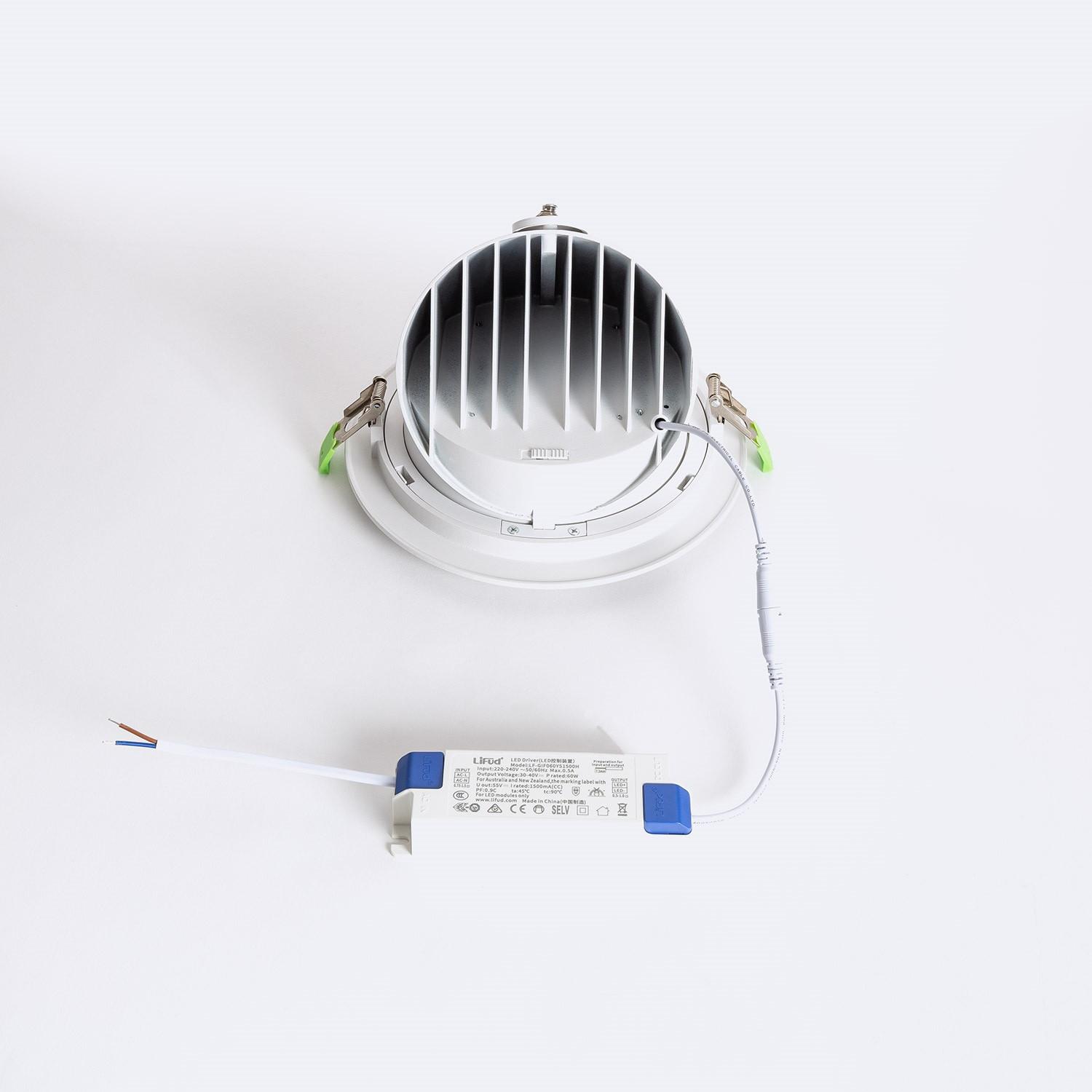 Downlight LED 60W Circular Direccionable Chip OSRAM 120 lm/W LIFUD Corte Ø 200 mm