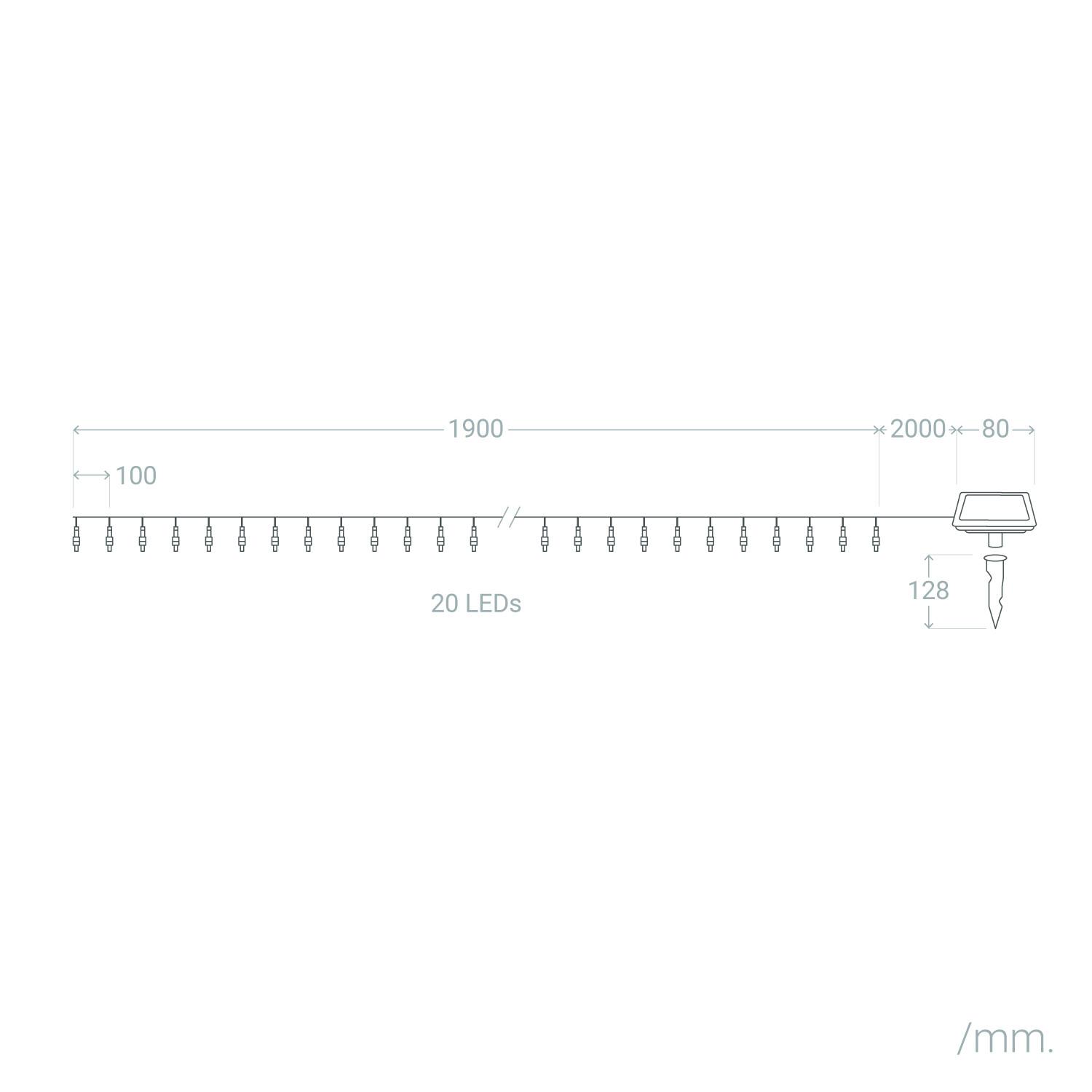 Ilumina tus espacios exteriores e interiores con la Guirnalda Solar Exterior LED Lilac de 2 metros. Equipada con 20 LED de luz blanco cálido (3000K), ofrece una iluminación acogedora y elegante, perfecta para crear ambientes agradables en terrazas, jardines o interiores. Su diseño resistente en PVC y protección IP44 garantiza durabilidad y funcionamiento óptimo en temperaturas desde -10°C hasta 55°C. Funciona con energía solar, siendo una opción sostenible y económica, e incluye interruptor para un manejo sencillo. Con una vida útil de 40.000 horas y certificaciones CE, RoHS y UKCA, esta guirnalda combina eficiencia, seguridad y estilo para decorar cualquier espacio con un toque de luz natural y ambiental.