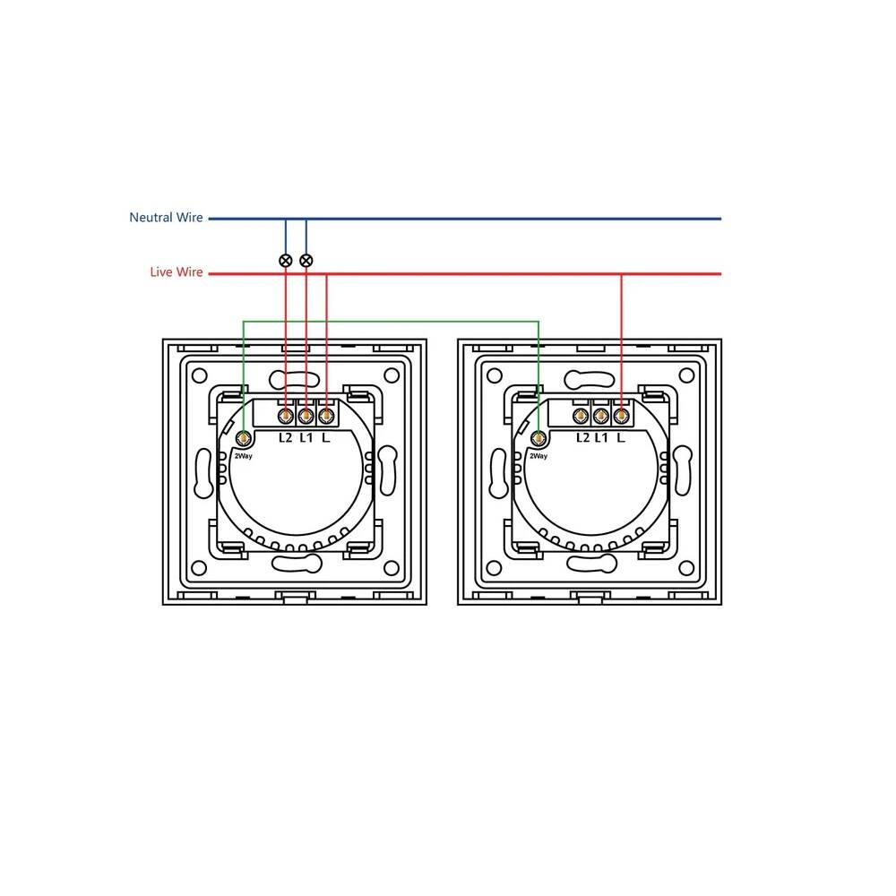 Interruptor Táctil Doble Conmutado y Cruzamiento con Marco Cristal Modern