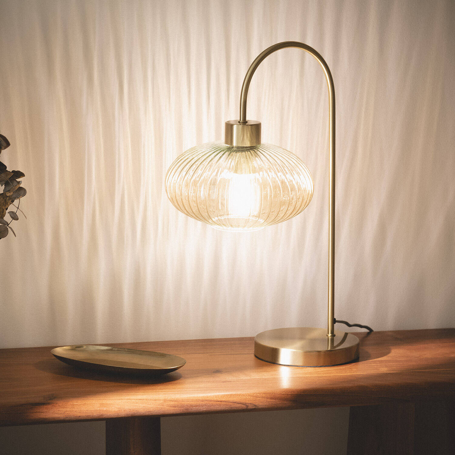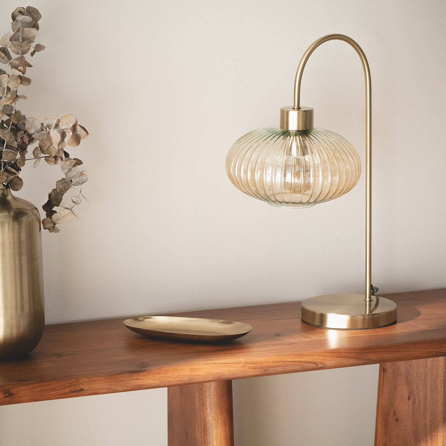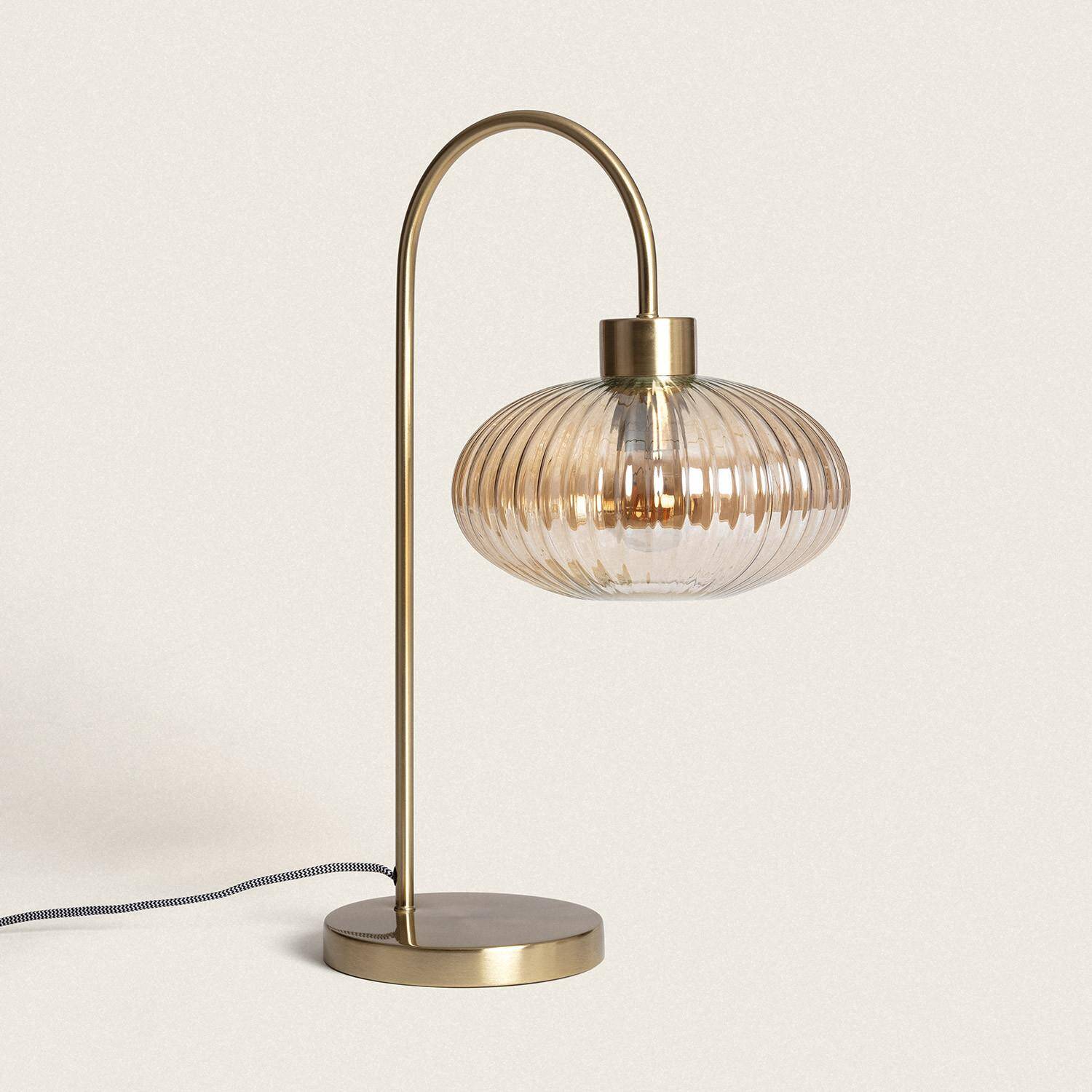 La lámpara de mesa Basile combina elegancia y funcionalidad con un diseño sofisticado en metal y cristal ámbar. Su estructura metálica dorada se curva delicadamente para sostener una pantalla de cristal estriado que difunde una luz cálida y acogedora, ideal para cualquier espacio interior. Compatible con bombillas E27 de hasta 40 W, esta lámpara ofrece una iluminación agradable y ambiental sin incluir la bombilla. Con certificaciones CE y RoHS, garantiza calidad y seguridad, además de una protección IP20 adecuada para interiores. Resistente a temperaturas entre -10 °C y 50 °C, es perfecta para crear ambientes únicos en salones, dormitorios o despachos, con una garantía de 3 años que asegura su durabilidad y confianza.