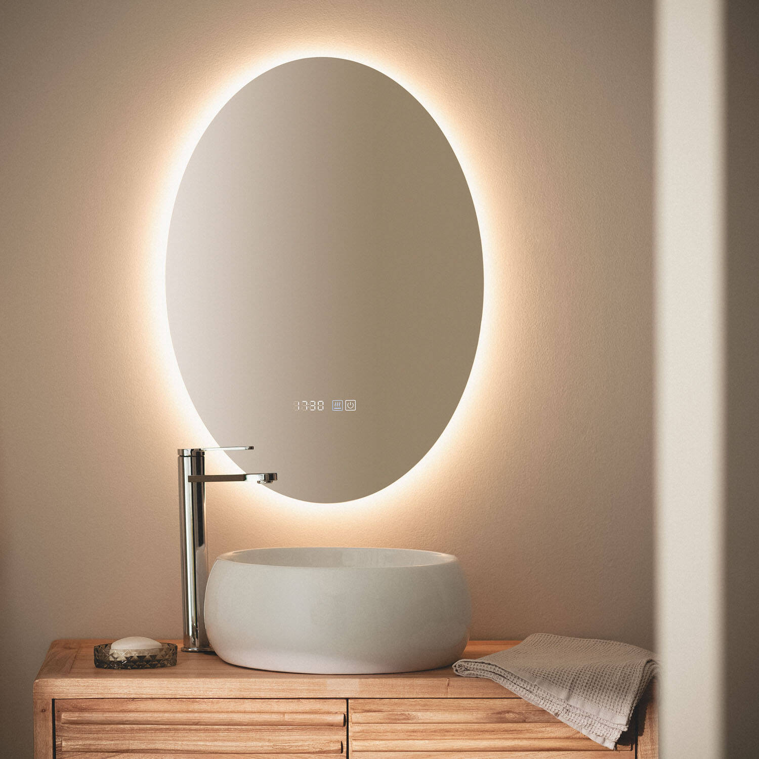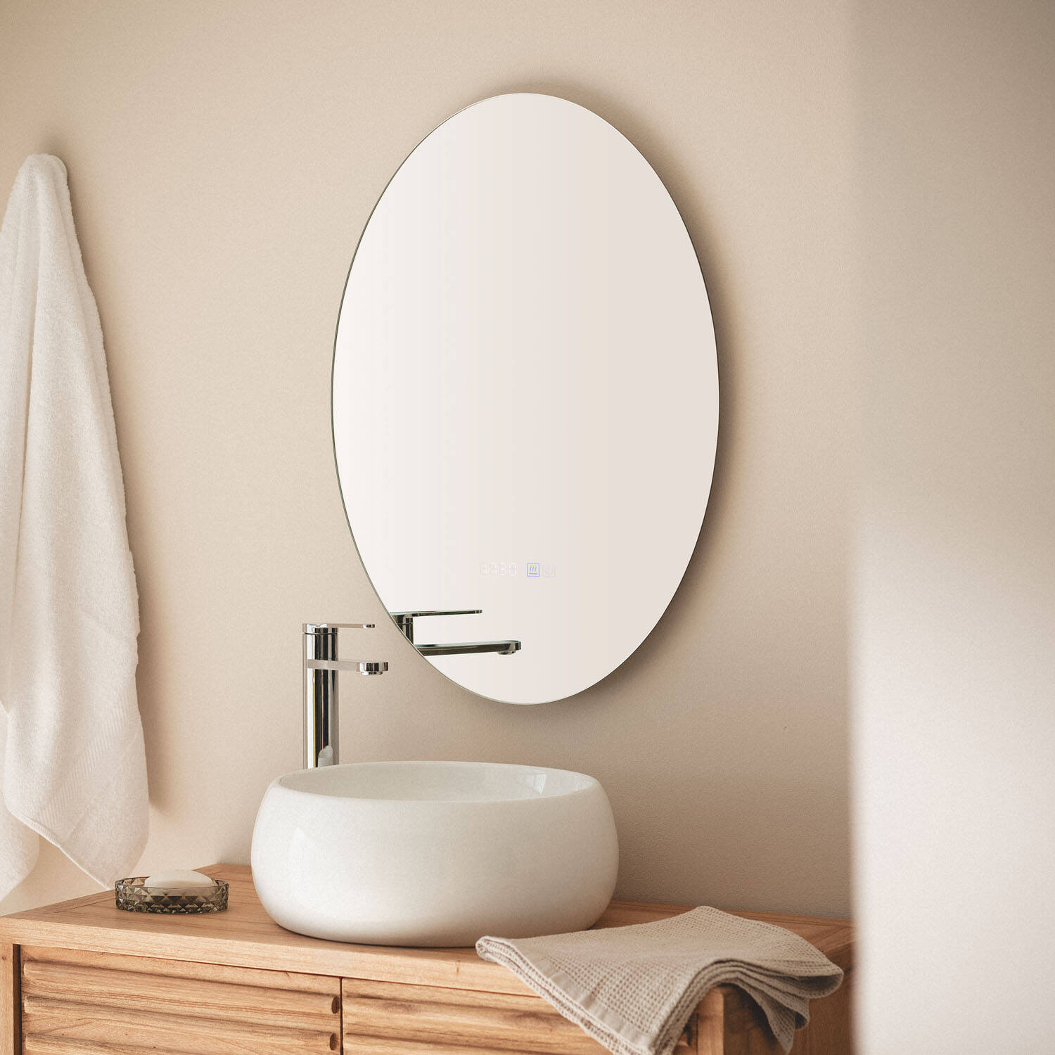 Este espejo de baño Catedrais de 70x50 cm combina funcionalidad y diseño moderno. Cuenta con una luz LED integrada de 21 W y 2400 lúmenes, con temperatura de color seleccionable entre cálido, neutro y frío (3000K - 4000K - 6000K), ideal para adaptarse a cualquier ambiente. Su sistema antivaho de 11 W garantiza una visibilidad perfecta incluso en baños con humedad alta. Fabricado en cristal de alta calidad, ofrece una protección IP44 para su uso seguro en interiores. Dispone de un control táctil intuitivo y una vida útil de hasta 40.000 horas. Certificado con CE, RoHS y UKCA, este espejo es una opción duradera y elegante que aportará luz y claridad a tu espacio.