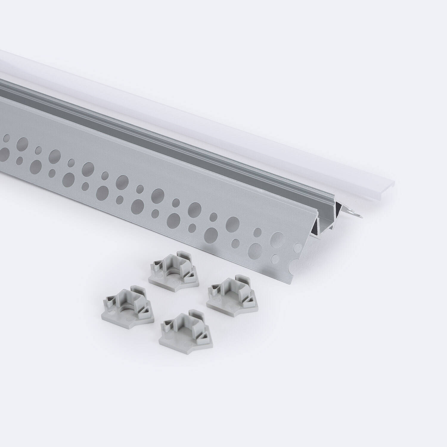 Perfil Aluminio Integrado en Escayola/Pladur Esquina Arista Tira LED hasta 9 mm con Tapa Continua