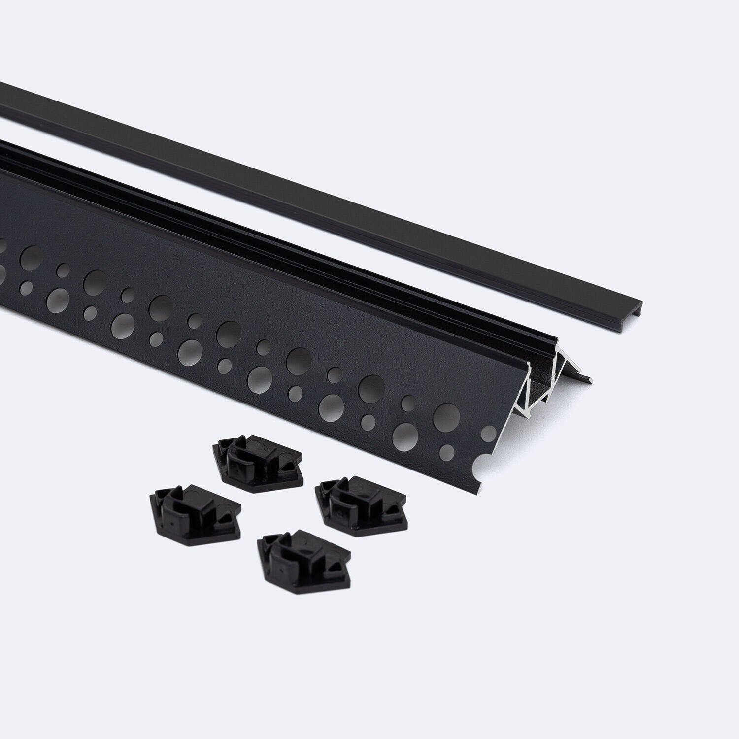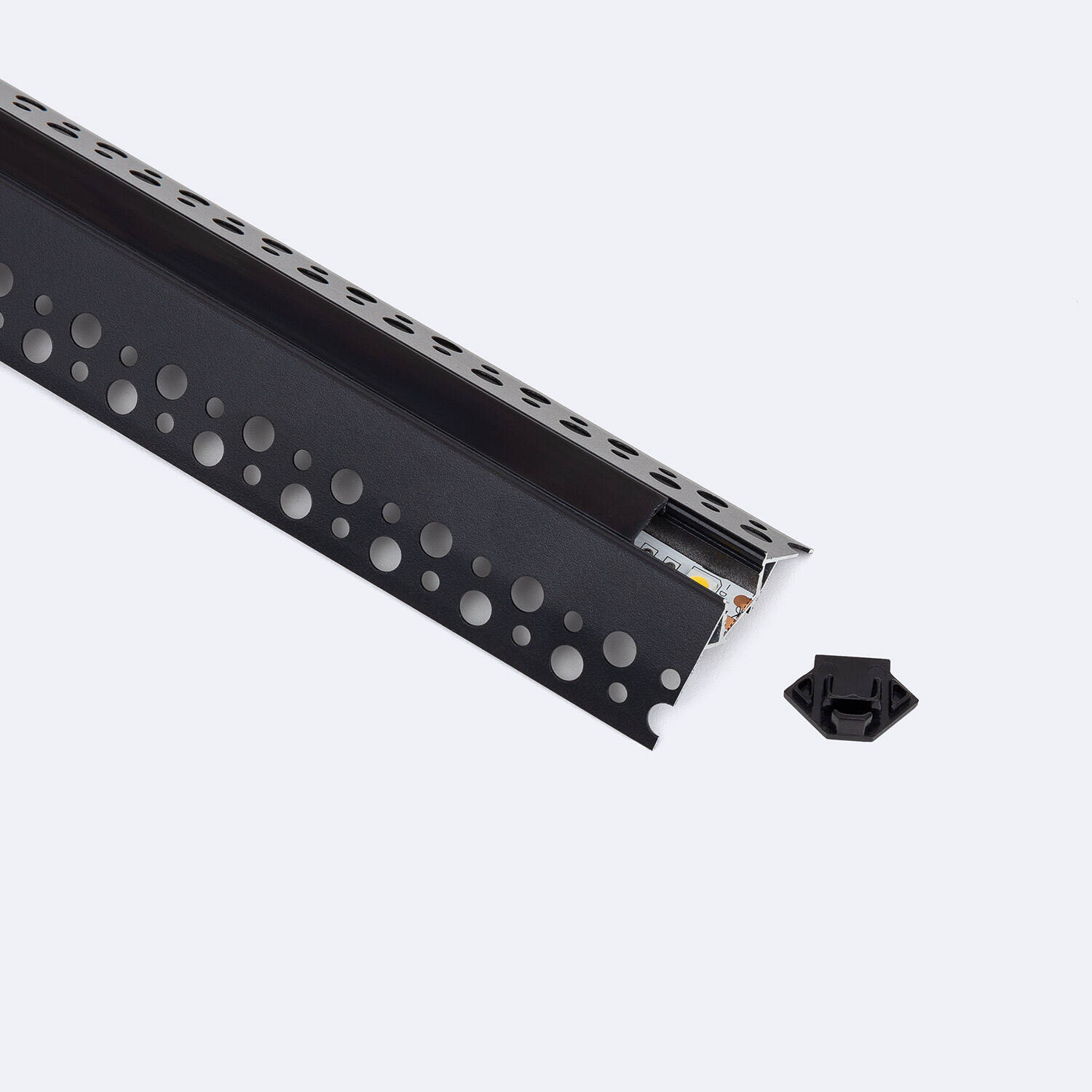 Perfil Aluminio Integrado en Escayola/Pladur Esquina Arista Tira LED hasta 9 mm con Tapa Continua