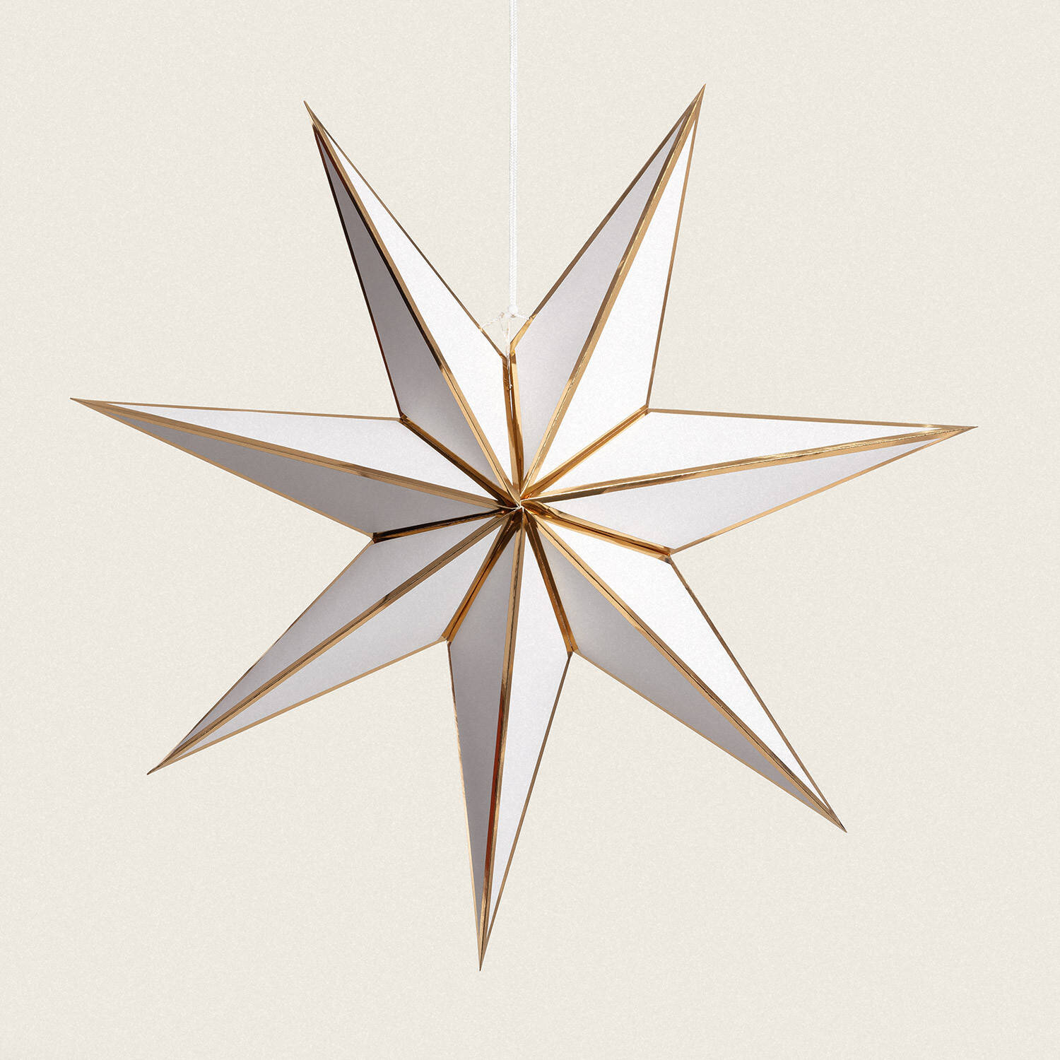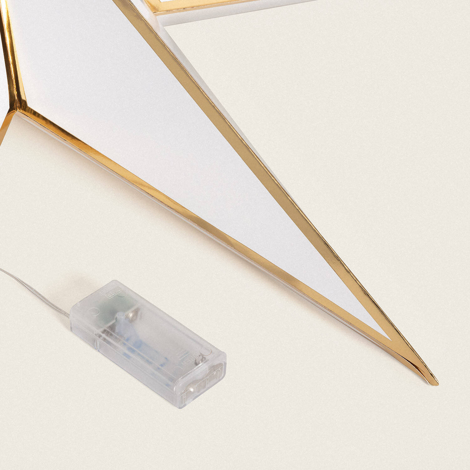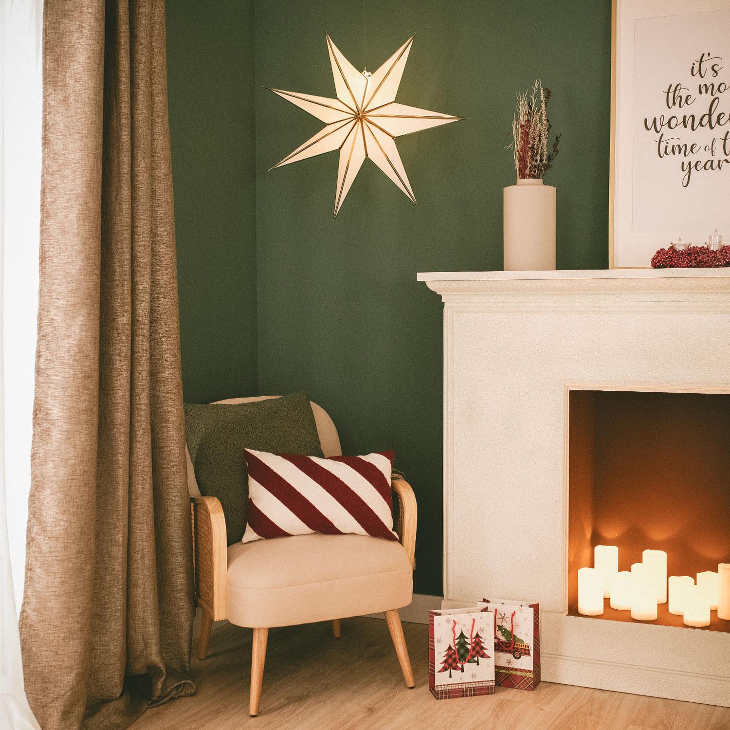 La Estrella LED Papel con Batería Rigel es una pieza decorativa ideal para ambientes interiores que buscan un toque cálido y elegante. Fabricada en cartón blanco con detalles dorados, esta estrella de 15 LED emite una luz blanco cálido (2700K) que crea una atmósfera acogedora y festiva. Funciona con batería (pilas no incluidas), lo que facilita su colocación sin necesidad de cables, y está certificada con CE y RoHS, garantizando calidad y seguridad. Resistente a temperaturas entre -20 °C y 50 °C, es perfecta para decorar salones, dormitorios o espacios de reunión durante todo el año. Su diseño ligero y delicado aporta un estilo sofisticado y moderno, complementando cualquier decoración con un brillo suave y envolvente.