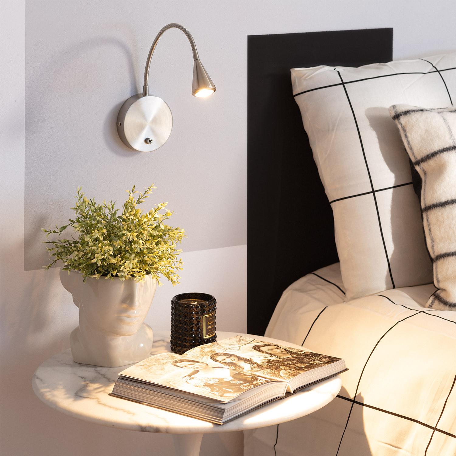 La lámpara de pared LED Koiné de 3W destaca por su diseño moderno y funcional en acero plateado, ideal para interiores. Su brazo flexible permite dirigir la luz cálida de 3000K con 180 lúmenes exactamente donde se necesite, perfecta para lectura o ambientes acogedores. Incorpora un práctico interruptor para un encendido sencillo y rápido. Resistente a temperaturas de -20 °C a 50 °C, ofrece durabilidad y seguridad, con certificaciones CE, RoHS y UKCA. Su instalación en superficie y protección IP20 la hacen adecuada para espacios interiores. Además, cuenta con una garantía de 3 años, asegurando calidad y confianza. Un complemento elegante y eficiente para cualquier habitación.