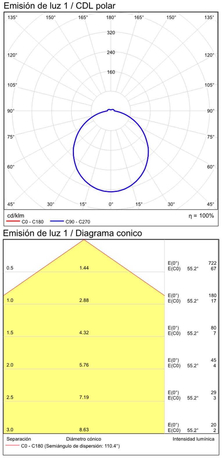 Especificaciones y datos fotométricos