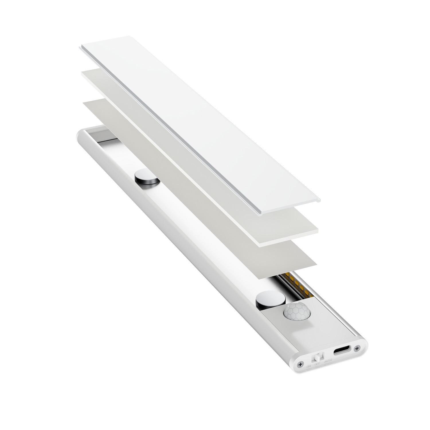 Barra LED 40cm con Sensor de Movimiento y Bateria Recargable USB C