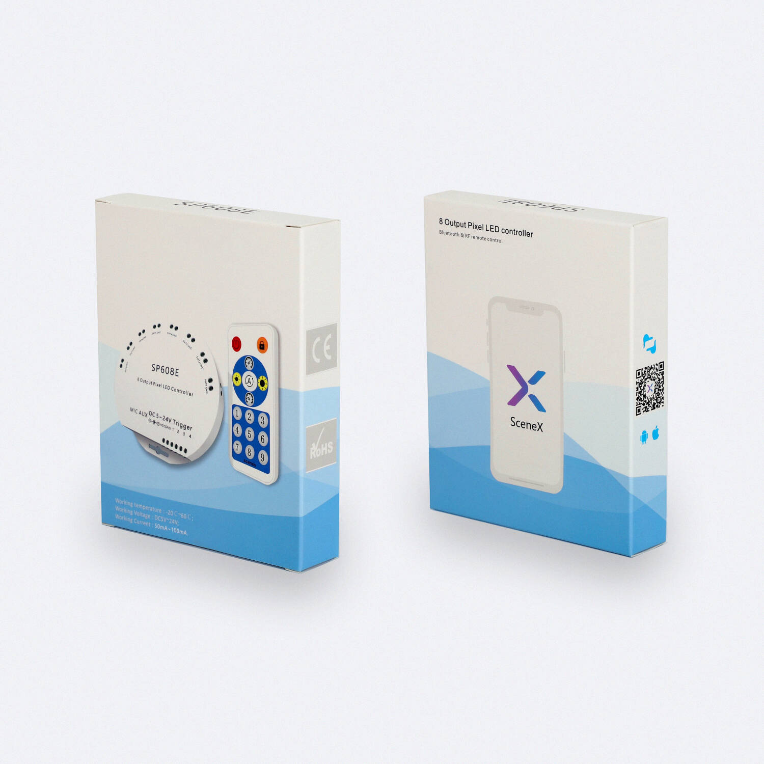 Controla y regula hasta 8 tiras LED RGB digitales SPI con este avanzado controlador SP608E, compatible con voltajes de 5 a 24V DC y una potencia máxima de 100W. Su diseño compacto en color blanco y material PC garantiza una integración discreta en interiores. Incluye mando RF para un manejo cómodo y también permite control vía APP, ofreciendo versatilidad y facilidad de uso. Funciona en un amplio rango de temperatura (-20 °C a 60 °C) y cuenta con certificaciones CE y RoHS que avalan su calidad y seguridad. Ideal para crear ambientes personalizados con luces RGBIC, este controlador ofrece una regulación precisa y fiable para tus proyectos de iluminación LED. Además, cuenta con garantía de 3 años para mayor tranquilidad.