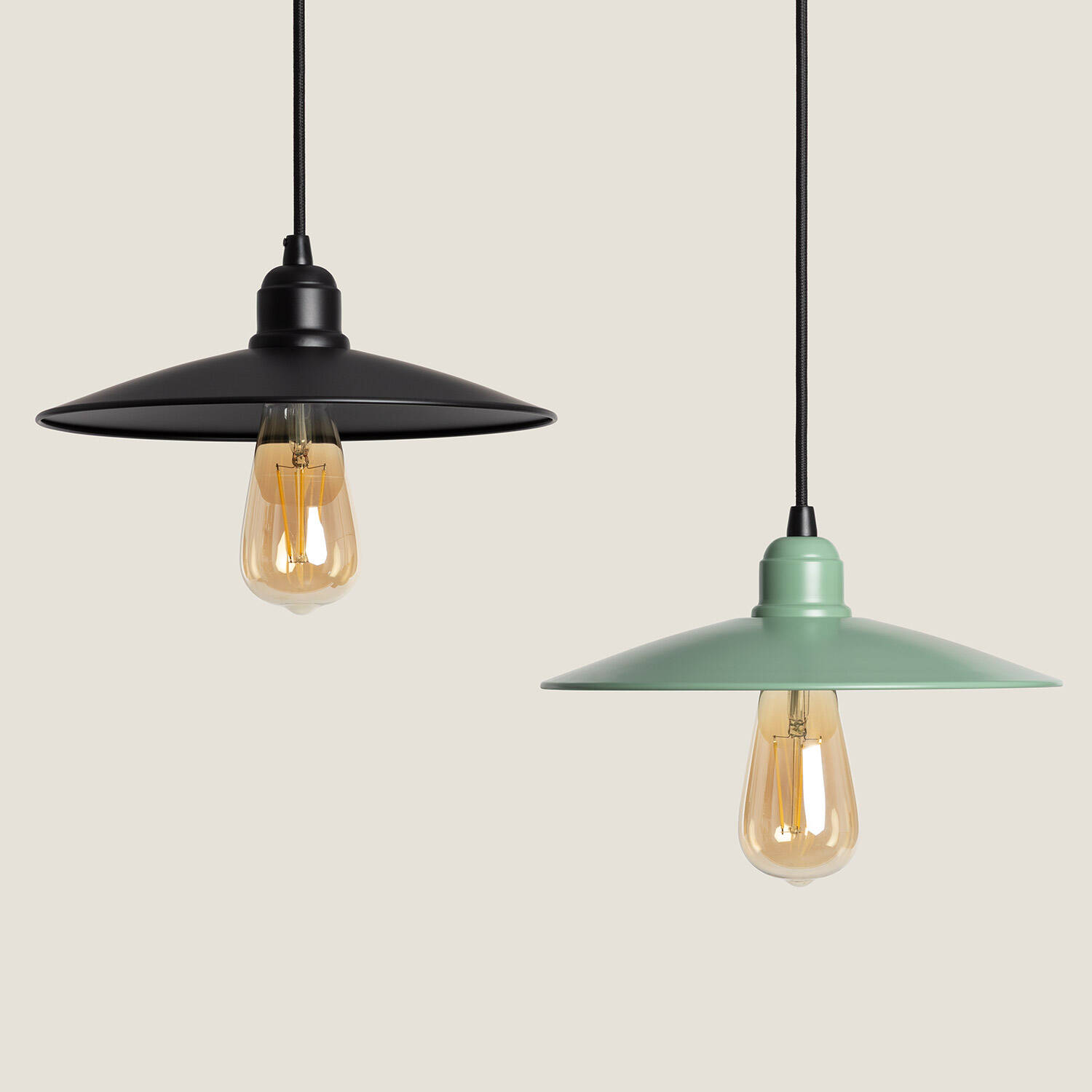 La lámpara colgante Metal Kato II destaca por su diseño industrial y elegante acabado en color verde, ideal para aportar un toque moderno y fresco a cualquier espacio interior. Fabricada en metal resistente, esta lámpara soporta bombillas con casquillo E27 y una potencia máxima de 40 W, ofreciendo una iluminación cálida y acogedora. Su instalación colgante permite adaptar la altura según la necesidad, creando ambientes únicos en salones, cocinas o zonas de trabajo. Cuenta con certificaciones CE y RoHS que garantizan calidad y seguridad, además de una protección IP20 adecuada para interiores. La lámpara no incluye bombilla, por lo que podrás elegir la que mejor se adapte a tu estilo y necesidades. Disfruta de un producto duradero con 3 años de garantía.