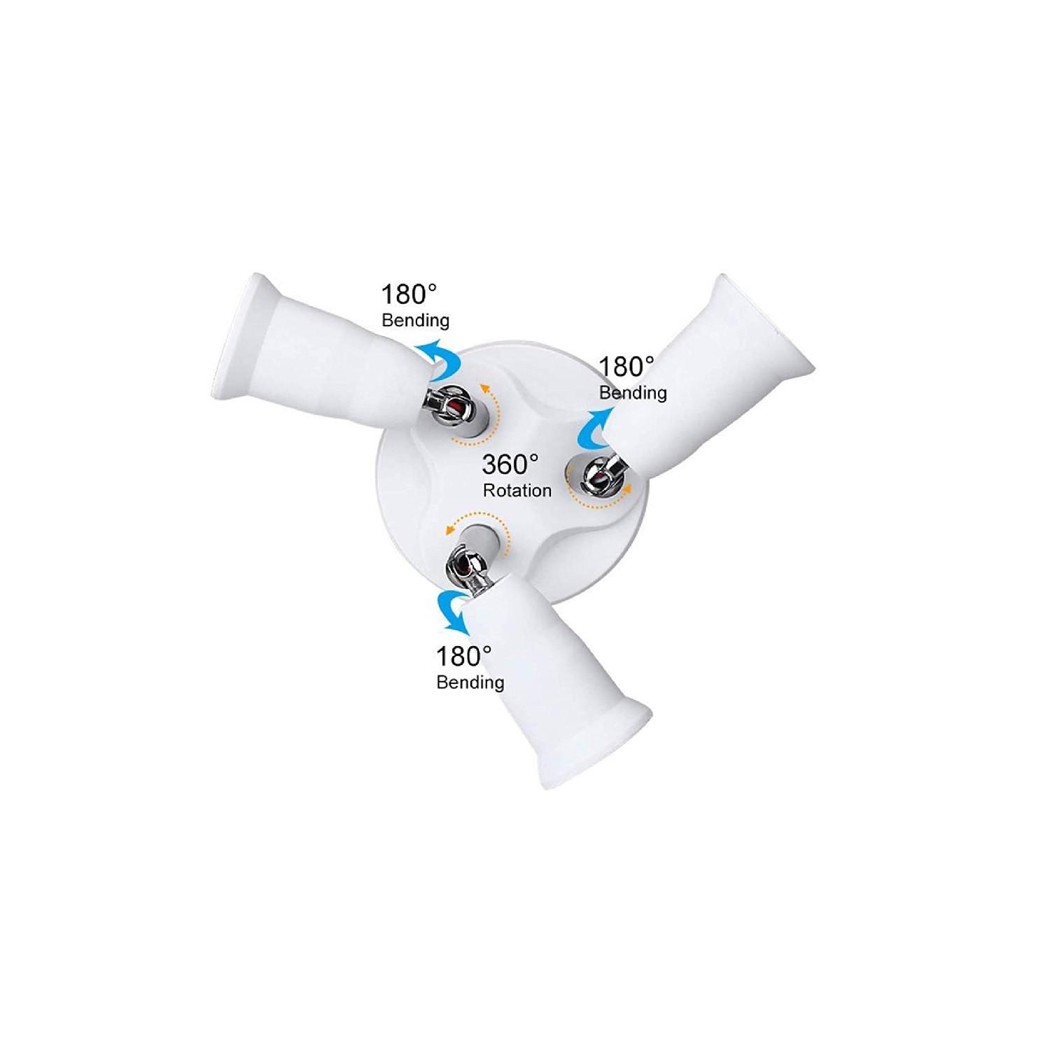 Este adaptador para bombilla E27 a 3 E27 es la solución perfecta para multiplicar la iluminación en cualquier espacio interior. Fabricado en color blanco, permite convertir una base de bombilla estándar en tres, aumentando la capacidad lumínica hasta 300W en total. Su diseño compacto y funcional facilita la instalación y el ajuste, con casquillos orientables que giran 360° y se pueden inclinar 180°, adaptándose a diferentes direcciones de luz. Cuenta con certificaciones CE, RoHS y UKCA, garantizando seguridad y calidad. Además, ofrece una garantía de 3 años, asegurando durabilidad y confianza. Ideal para optimizar la iluminación en hogares, oficinas o comercios sin necesidad de realizar instalaciones complejas.
