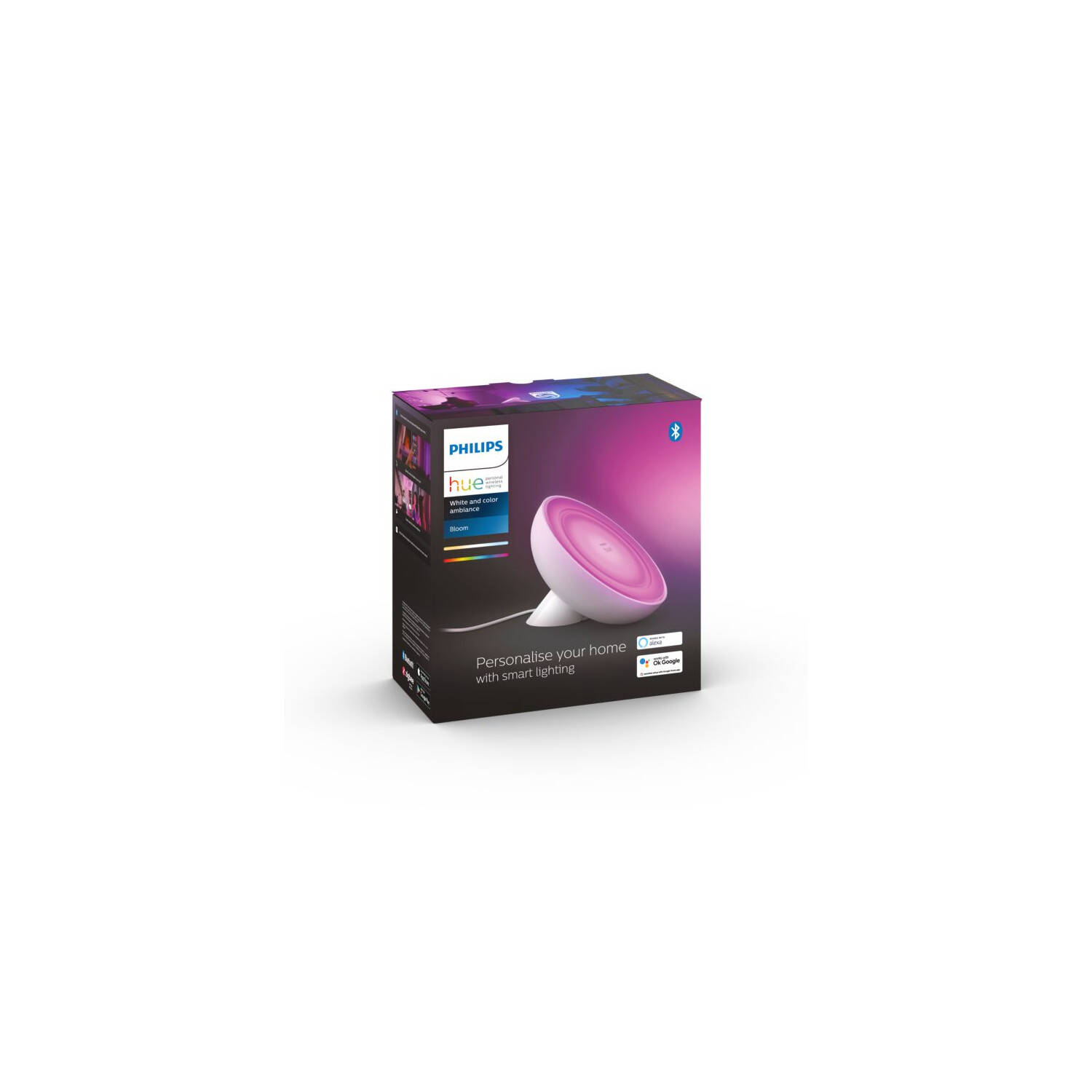 La lámpara de mesa LED White Color 5.3W PHILIPS Hue Bloom combina diseño moderno y tecnología avanzada para crear ambientes personalizados. Con una potencia de 14W, ofrece una iluminación regulable en tonos blancos y colores RGBW, adaptándose a cualquier momento del día. Compatible con asistentes de voz como Alexa, Google Assistant y Apple HomeKit, permite control remoto vía app o Bluetooth. Su cuerpo en metal y PC, junto con una vida útil de 25.000 horas, garantiza durabilidad y calidad. Ideal para interiores, soporta temperaturas de -20 °C a 50 °C y cuenta con certificaciones CE, RoHS y UKCA. Con Philips Hue Bloom, transforma tu espacio con luz inteligente y versátil.