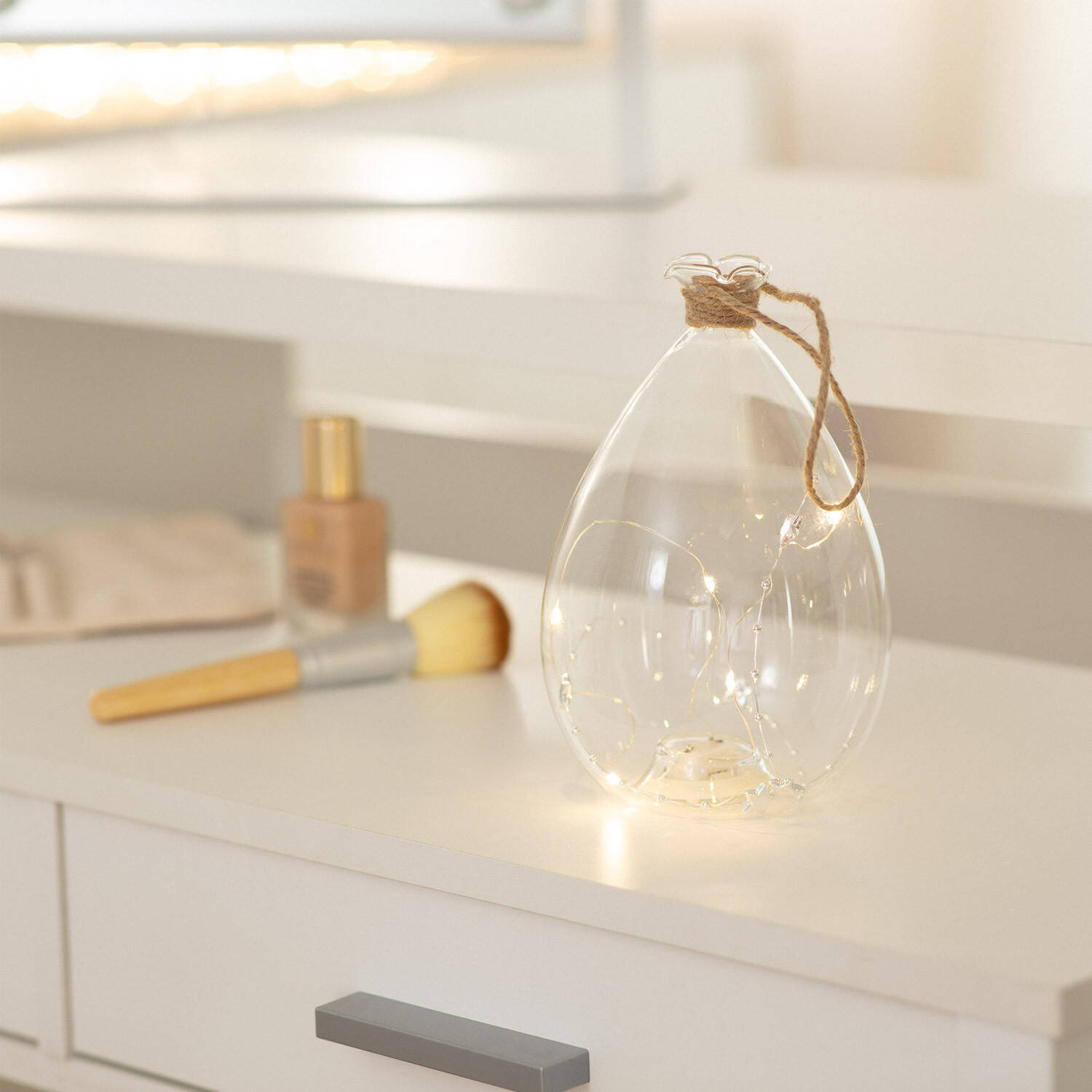 El Tarro de Cristal LED Botero es una pieza decorativa que aporta calidez y estilo a cualquier espacio interior. Fabricado en cristal y aluminio, combina elegancia y resistencia, con un diseño que imita un tarro artesanal con cuerda natural en el cuello. Cuenta con 5 LEDs de luz blanco cálido (3000K), que crean un ambiente acogedor y relajante. Su protección IP20 lo hace ideal para interiores, funcionando perfectamente en temperaturas de -20 °C a 50 °C. Con una vida útil de 30.000 horas y certificaciones CE, RoHS y UKCA, ofrece calidad y durabilidad garantizadas durante 3 años. Perfecto para iluminar y decorar con un toque sutil y sofisticado.