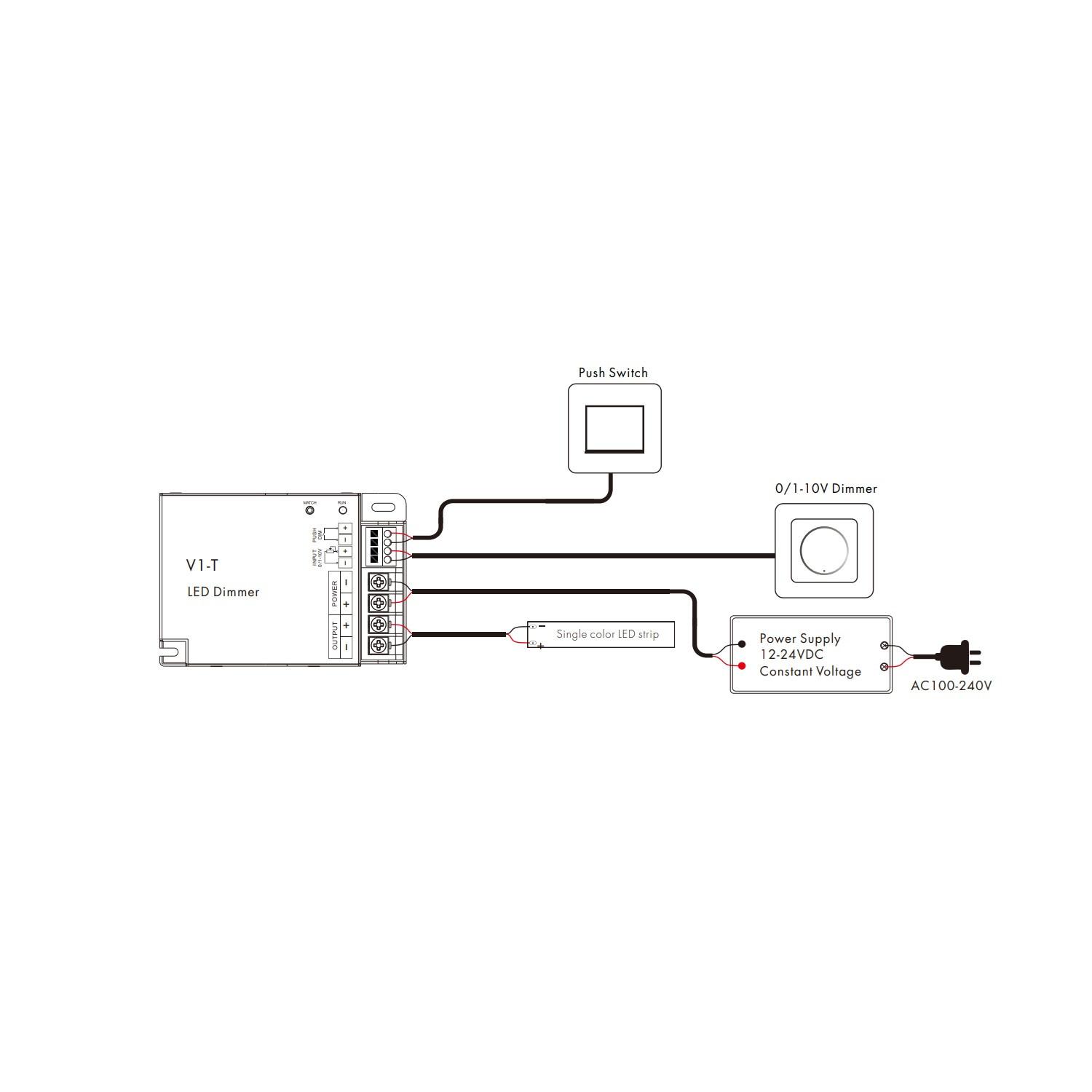 Controlador Regulador Tira LED Monocolor 12/24V DC Compatible con Mando RF, Regulador 0/1-10V y Pulsador