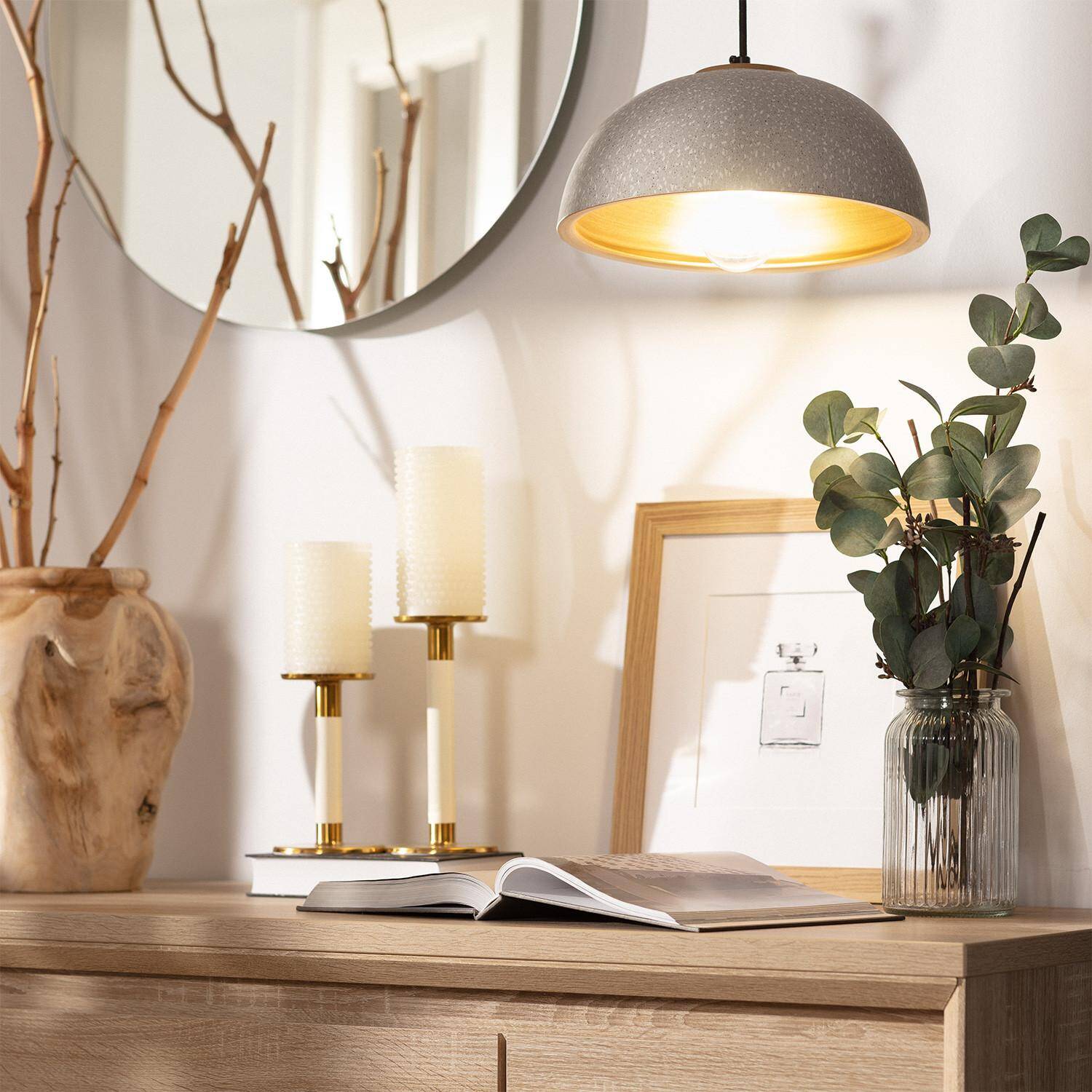 La lámpara colgante Cerámica Crowe destaca por su diseño elegante y contemporáneo, ideal para ambientes interiores. Su pantalla de cerámica en tono gris aporta un toque natural y sofisticado, mientras que el interior dorado refleja la luz cálidamente, creando atmósferas acogedoras. Compatible con bombillas E27 de hasta 40W, ofrece versatilidad para elegir la iluminación adecuada a cada espacio. Con protección IP20, es perfecta para uso en interiores y soporta temperaturas de -20 °C a 50 °C. Su instalación colgante y acabado cuidado la convierten en una pieza funcional y decorativa que realza cualquier estancia con estilo y personalidad. Además, cuenta con certificaciones CE, RoHS y UKCA, garantizando calidad y seguridad.