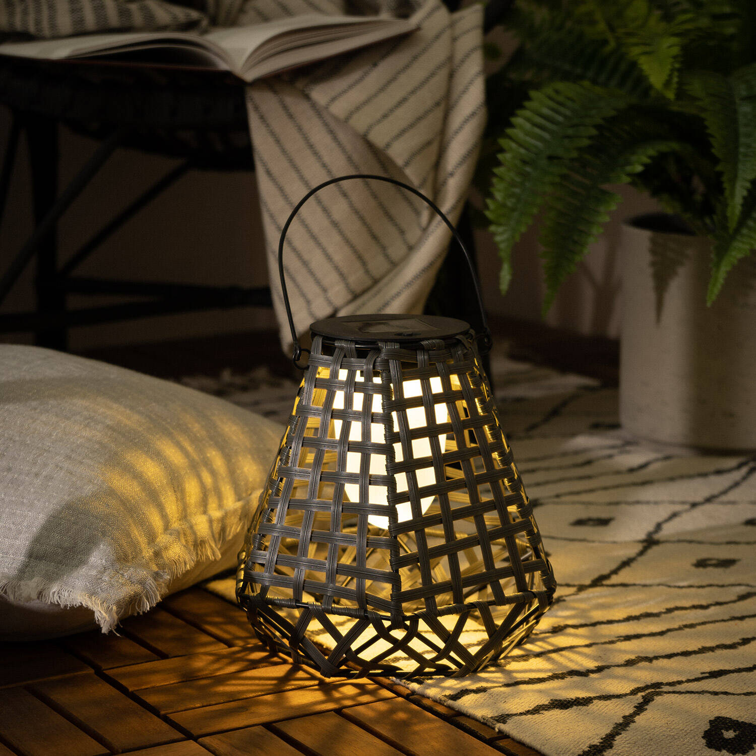 La Lámpara de Mesa Exterior Solar LED Mumbai es una pieza elegante y funcional diseñada para ambientes exteriores e interiores. Fabricada en resistente polietileno negro, cuenta con un diseño trenzado que proyecta una luz blanca cálida y acogedora, ideal para crear ambientes relajantes. Su potencia de 1W y protección IP44 garantizan su durabilidad y resistencia a condiciones climáticas adversas, funcionando en un rango de -20 °C a 50 °C. Alimentada por energía solar, incorpora un interruptor para un manejo sencillo y eficiente. Perfecta para terrazas, jardines o cualquier espacio exterior, esta lámpara combina estilo y sostenibilidad, ofreciendo hasta 3 años de garantía para una iluminación ecoamigable y duradera.