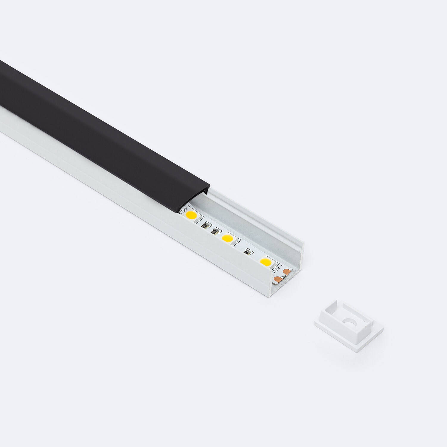 Perfil Aluminio Superficie para Tira LED hasta 15 mm con Tapa Continua