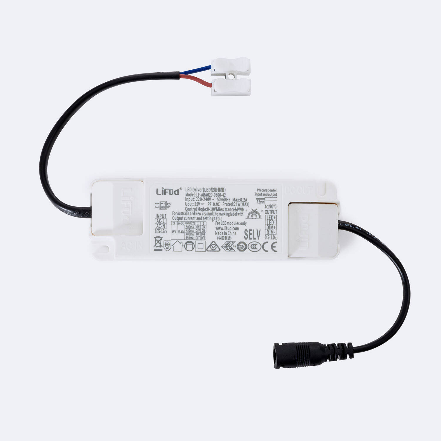 Driver LIFUD Regulable 1-10V 220-240V No Flicker Salida 25-42V 350-500mA 15-20W LF-ABA020-0500-42