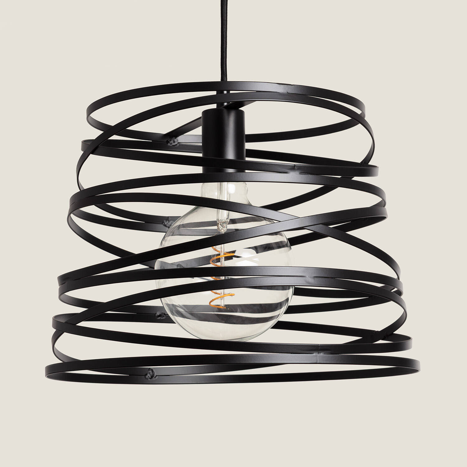 La lámpara colgante Metal Hura destaca por su diseño moderno y elegante, con un acabado en negro que aporta un toque industrial y contemporáneo a cualquier estancia interior. Su estructura metálica está formada por aros entrelazados que envuelven la bombilla E27 (no incluida), creando un efecto visual único y sofisticado. Compatible con bombillas de hasta 20 W, esta lámpara es ideal para ambientes que buscan un estilo minimalista pero con personalidad. Su instalación colgante y certificaciones CE, RoHS y UKCA garantizan seguridad y calidad. Perfecta para salones, comedores o zonas de trabajo, la Metal Hura combina funcionalidad y estética en una pieza duradera con tres años de garantía.