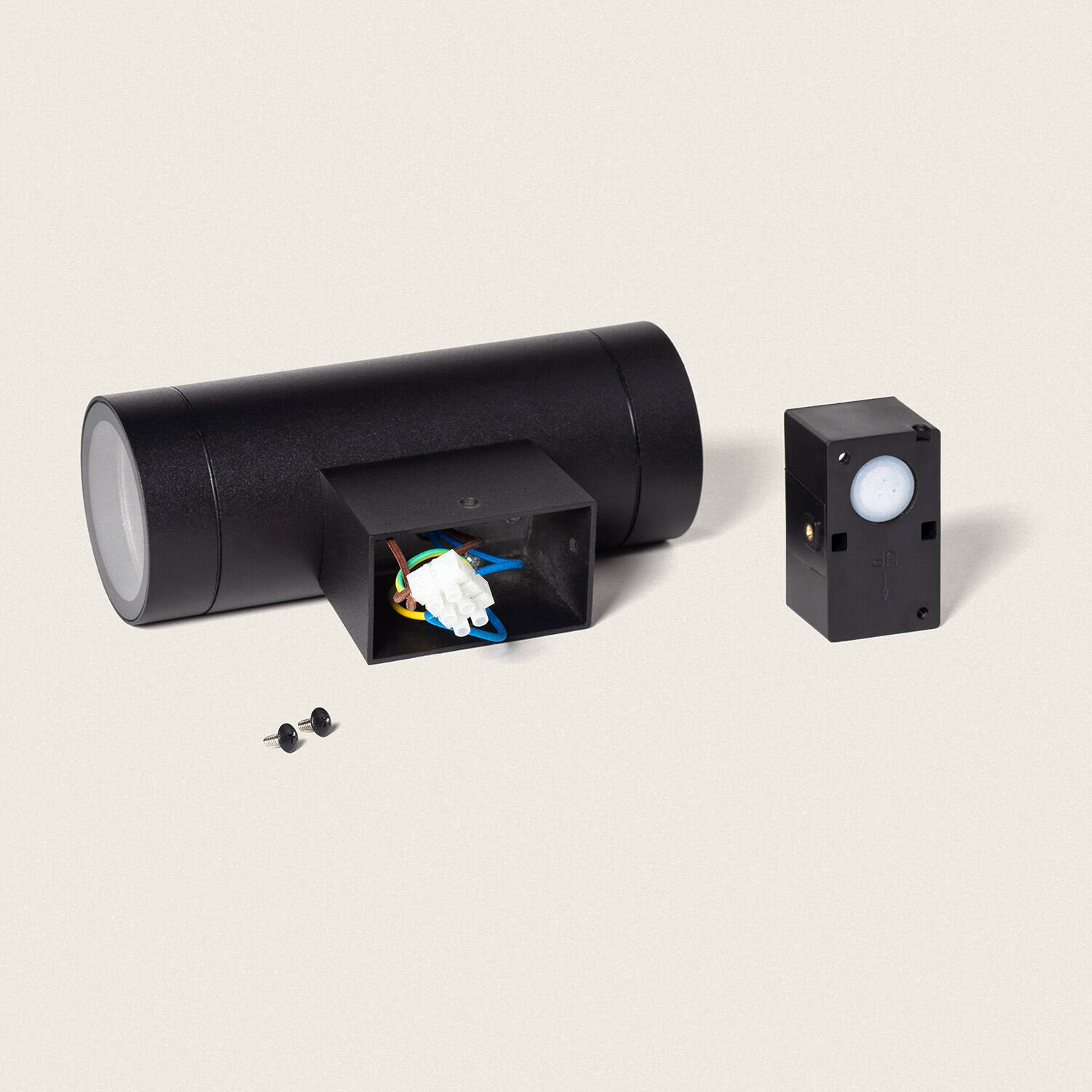 Este aplique de pared exterior Oakham destaca por su diseño cilíndrico en aluminio negro, ideal para ambientes modernos y funcionales. Su iluminación doble cara proporciona un efecto luminoso elegante y equilibrado, perfecto para realzar fachadas, entradas o jardines. Compatible con bombillas GU10 (no incluidas), ofrece una potencia máxima de 10W y un ángulo de apertura de 100º, asegurando una iluminación amplia y eficiente. Su protección IP54 garantiza resistencia a la intemperie, funcionando en temperaturas desde -20 °C hasta 50 °C. Fácil de instalar en paredes, combina durabilidad, estilo y funcionalidad, respaldado por una garantía de 3 años y certificaciones CE, RoHS y UKCA. Una solución versátil para interiores y exteriores.
