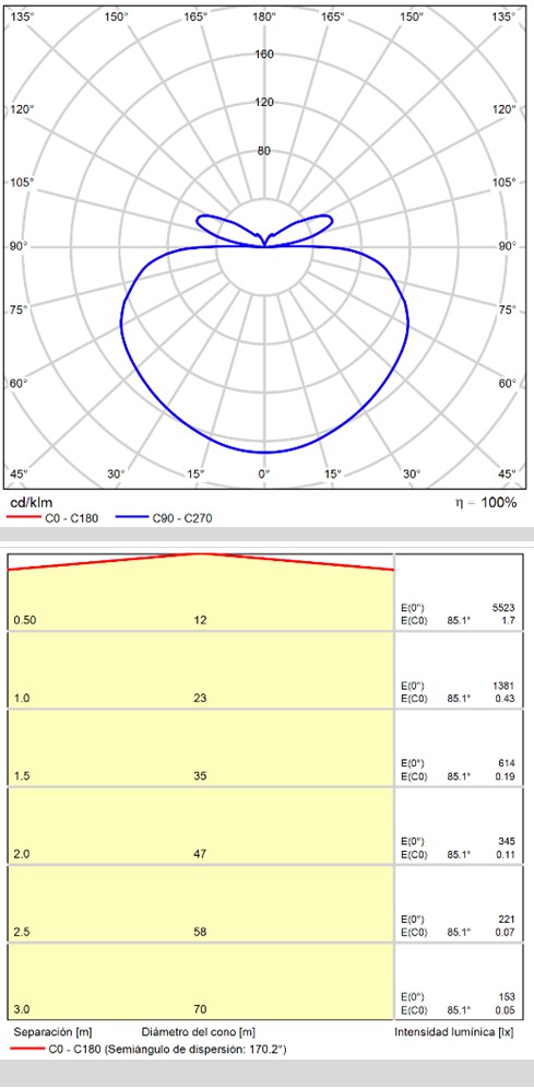 Especificaciones y datos fotométricos