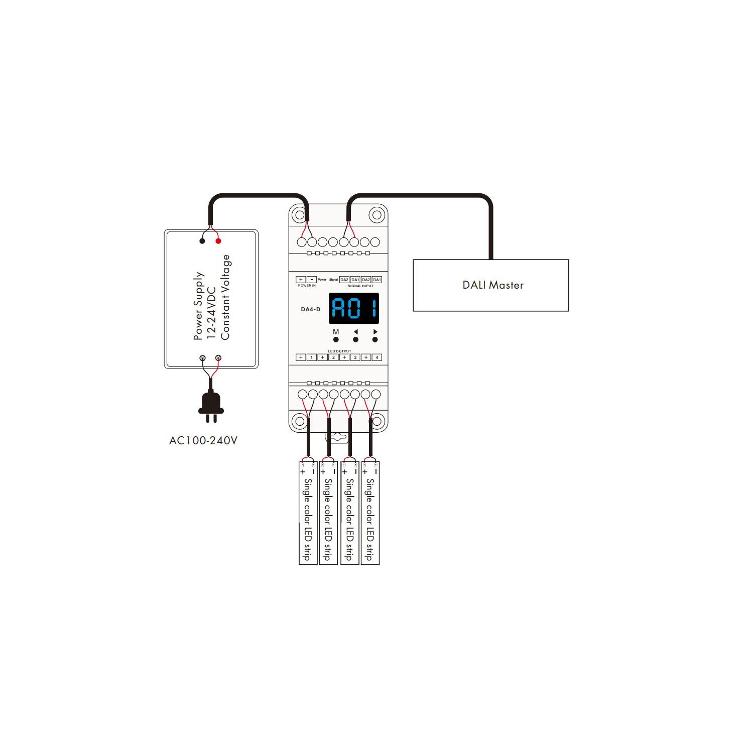 Regulador DALI 4 canales Tira LED para Carril DIN