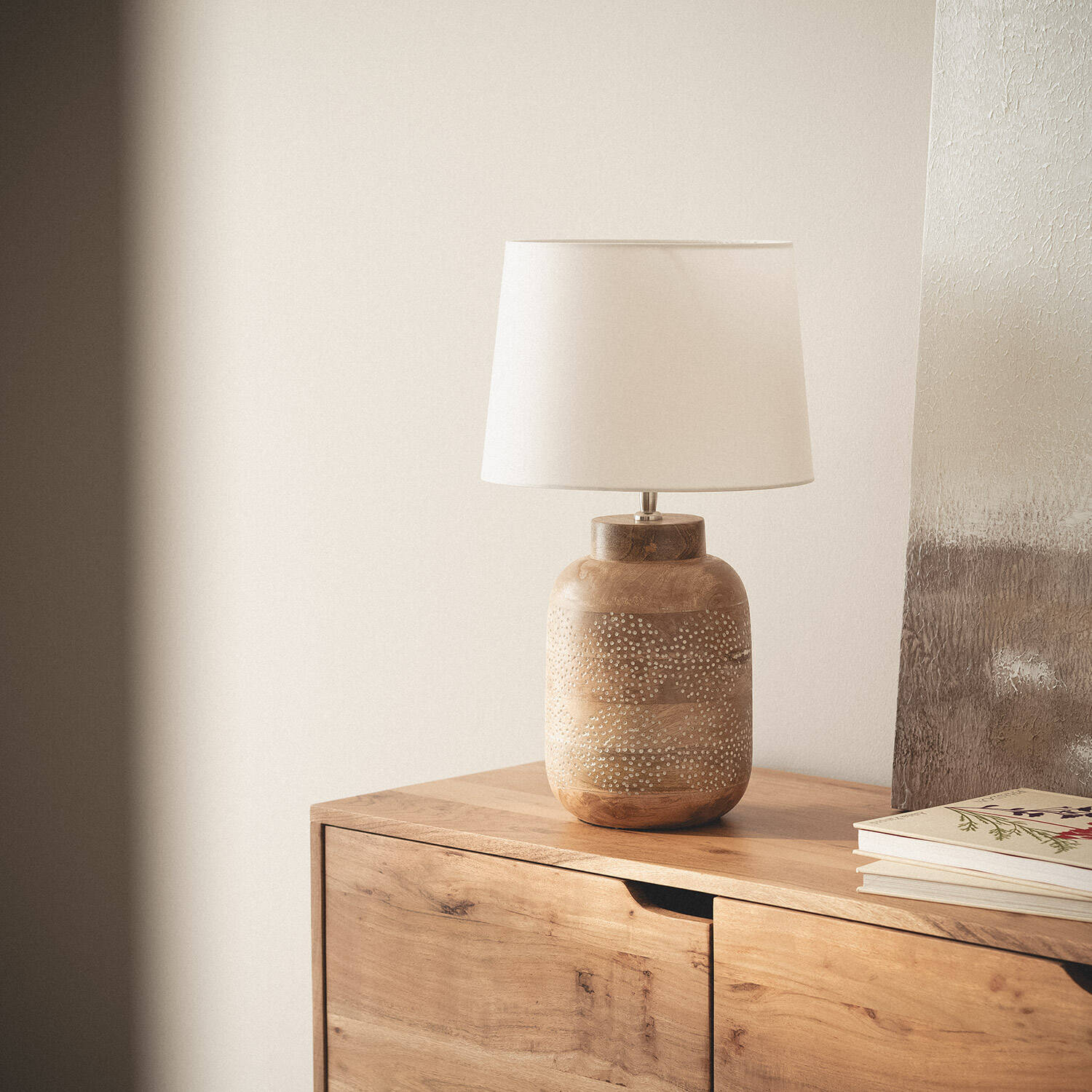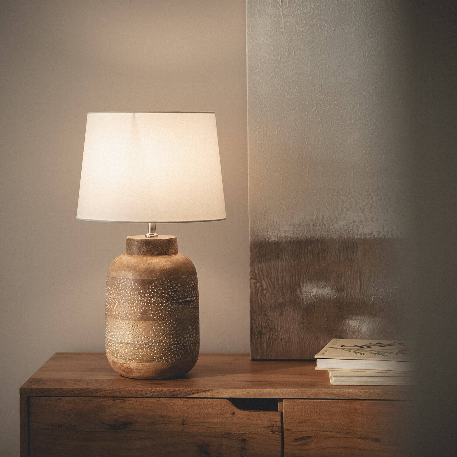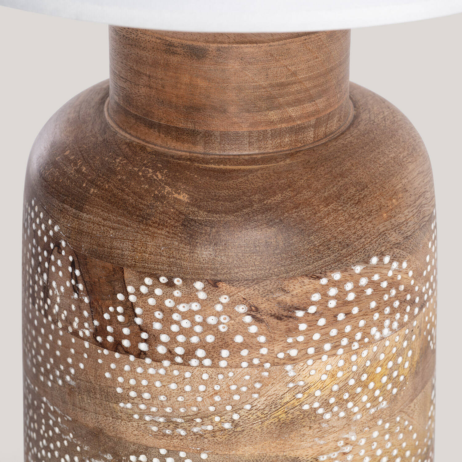 La lámpara de mesa Akash ILUZZIA combina elegancia y calidez con un diseño artesanal en madera natural decorada con delicados puntos blancos, que aportan un toque distintivo y acogedor. Su pantalla textil blanca suaviza la luz, creando un ambiente relajante ideal para cualquier estancia interior. Compatible con bombillas E27 de hasta 40 W (no incluida), esta lámpara ofrece una iluminación funcional y decorativa. Con certificaciones CE, RoHS y UKCA, garantiza calidad y seguridad. Su cable textil marrón con interruptor facilita su uso, mientras que su resistencia a temperaturas de -10 °C a 65 °C asegura durabilidad. Un complemento perfecto para dar estilo y confort a tu hogar, con tres años de garantía.