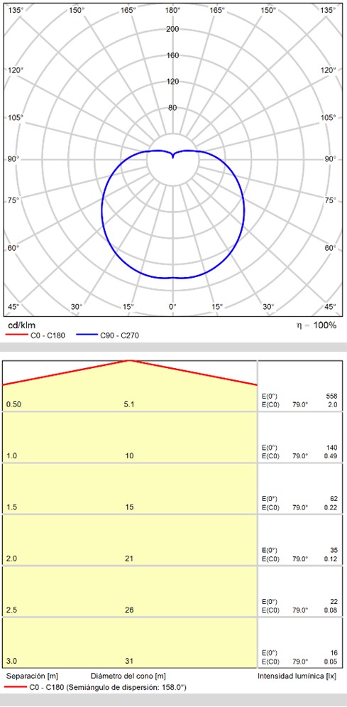 Especificaciones y datos fotométricos