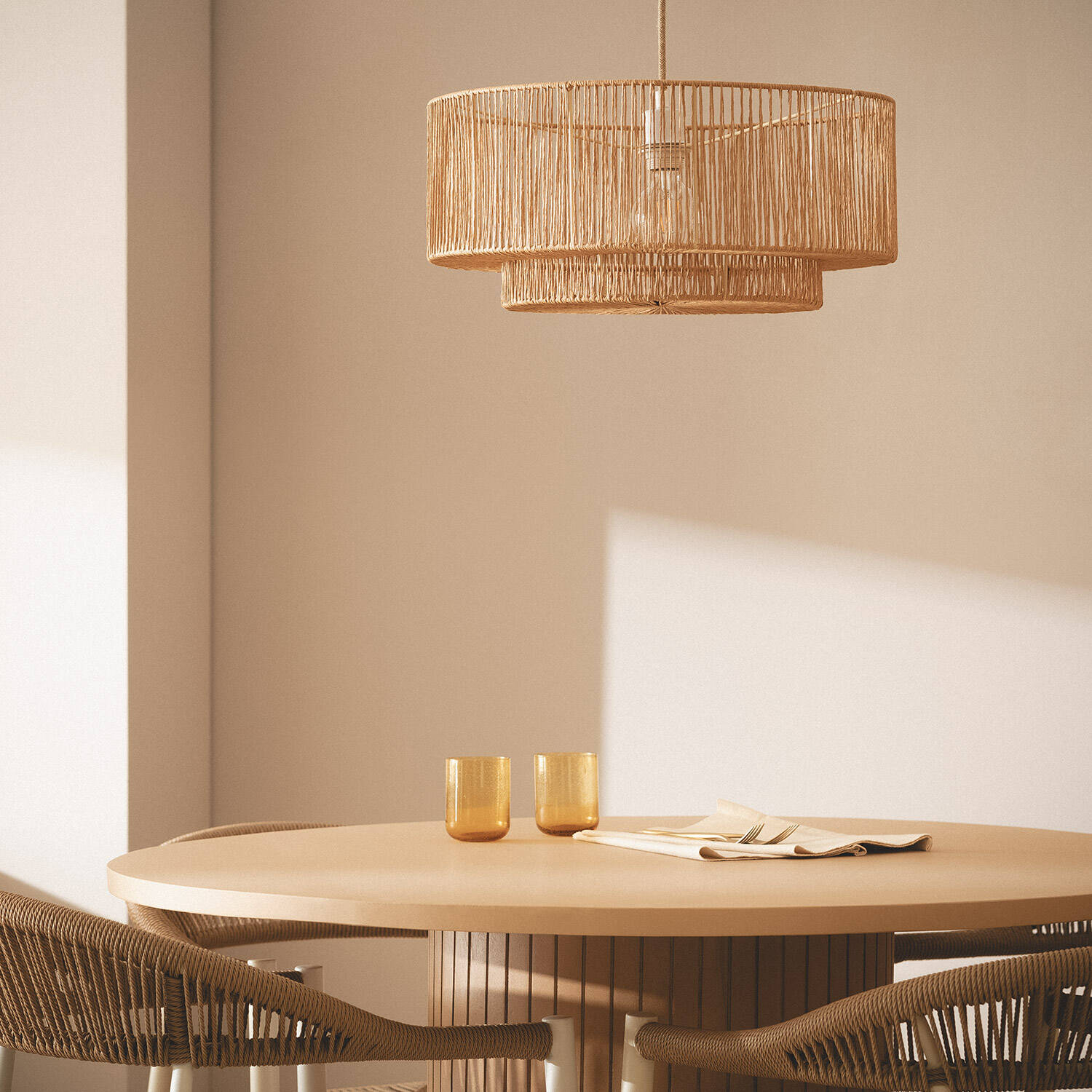 La lámpara colgante Dicenta de papel trenzado es una pieza única que aporta calidez y estilo natural a cualquier espacio interior. Con un diámetro de 500 mm, su diseño artesanal destaca por la delicadeza de sus hilos entrelazados, creando un efecto visual ligero y elegante. Ideal para ambientes acogedores, esta lámpara funciona con bombillas E27 (no incluidas) y soporta una potencia máxima de 40 W. Su acabado en color natural y su estructura ligera la convierten en un complemento perfecto para salones, comedores o zonas de descanso. Además, cuenta con certificaciones CE, RoHS y UKCA, y ofrece una garantía de 3 años, asegurando calidad y durabilidad.