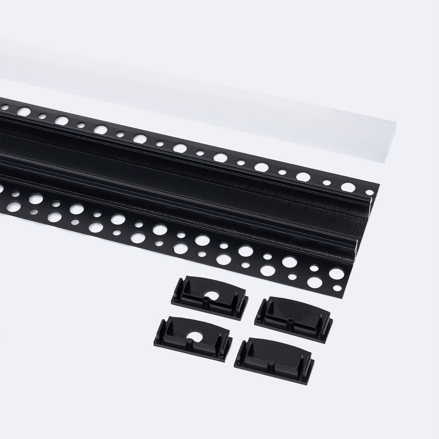 Este perfil de aluminio integrado para escayola o pladur está diseñado para alojar tiras LED de hasta 20 mm, ofreciendo una instalación discreta y elegante. Pertenece a la serie Argos H20 y destaca por su estructura robusta en aluminio negro, complementada con una tapa continua blanco traslúcida que difunde la luz de manera uniforme, evitando deslumbramientos. Su diseño permite una integración perfecta en techos o paredes, aportando un acabado profesional y moderno. Incluye tapa superior y cuenta con certificación RoHS, garantizando calidad y respeto ambiental. Ideal para uso interior, este perfil asegura durabilidad y un resultado estético impecable, respaldado por una garantía de 3 años.