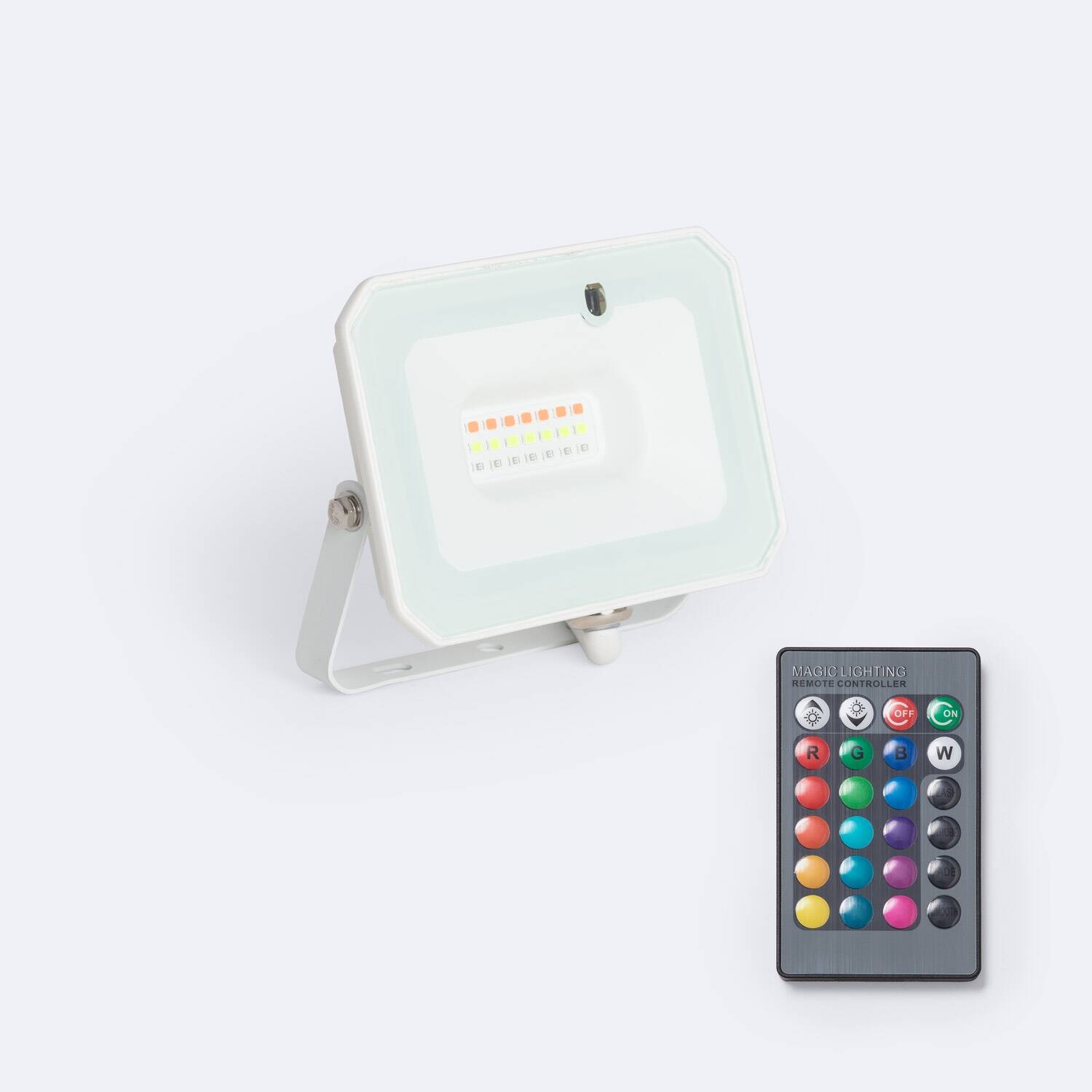 Este foco proyector LED de 10W RGBW es ideal para iluminar tanto interiores como exteriores con estilo y funcionalidad. Su diseño en aluminio y cristal garantiza resistencia y durabilidad, mientras que su protección IP65 lo hace resistente al agua y al polvo. Con una luminosidad de 1000 lúmenes y eficiencia de 100 lm/W, ofrece una iluminación potente y eficiente. Incluye mando a distancia IR para controlar fácilmente los colores RGB y la intensidad, permitiendo crear ambientes personalizados. Su ángulo de apertura de 120º asegura una amplia cobertura lumínica. Soporta temperaturas de trabajo entre -20 °C y 45 °C, y cuenta con una vida útil de 40.000 horas, certificaciones CE, RoHS y UKCA, y una garantía de 3 años. Perfecto para dar vida y color a cualquier espacio con total fiabilidad.