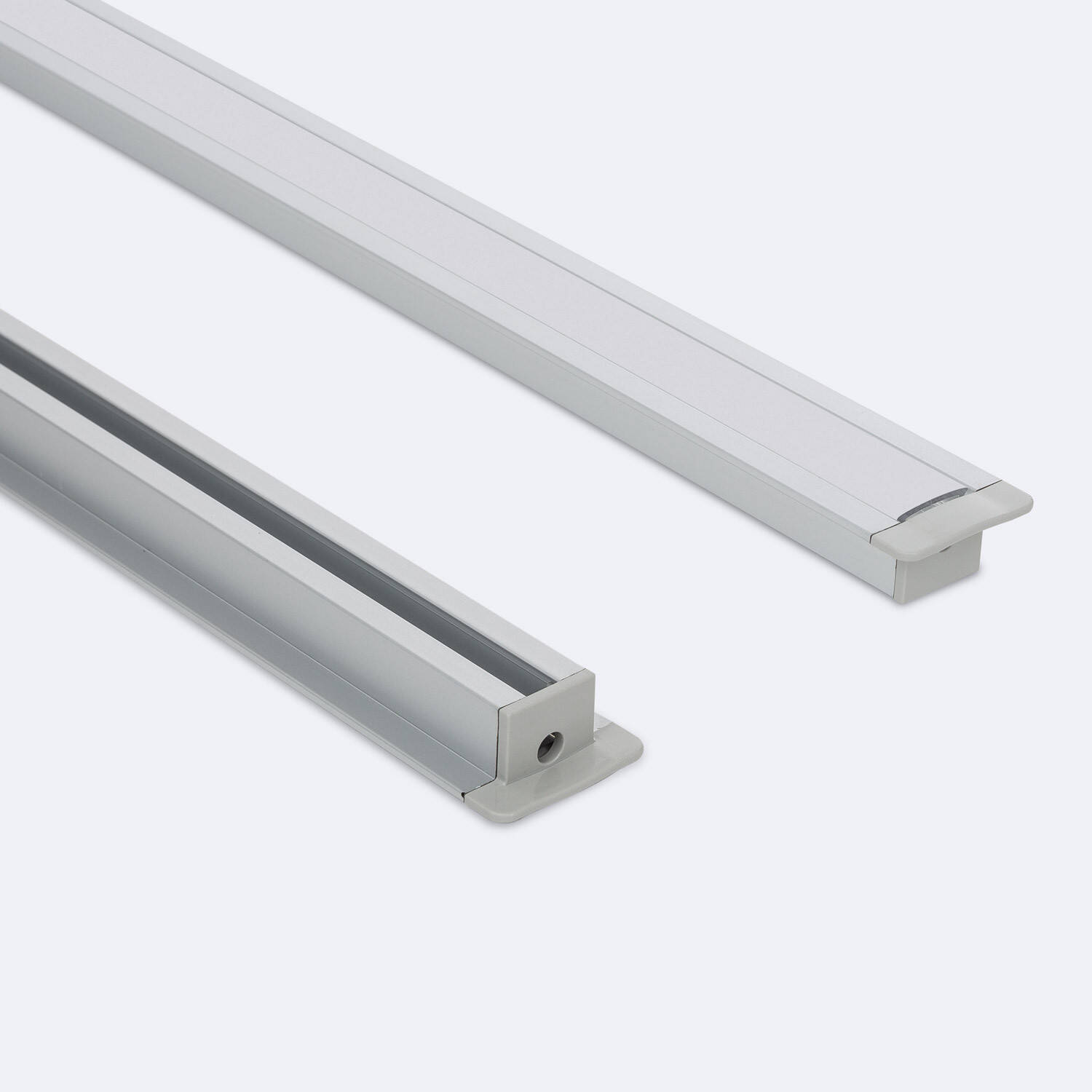 Perfil Aluminio Empotrable con Clips y Tapa Continua para Tiras LED hasta 12 mm con Tapa Continua
