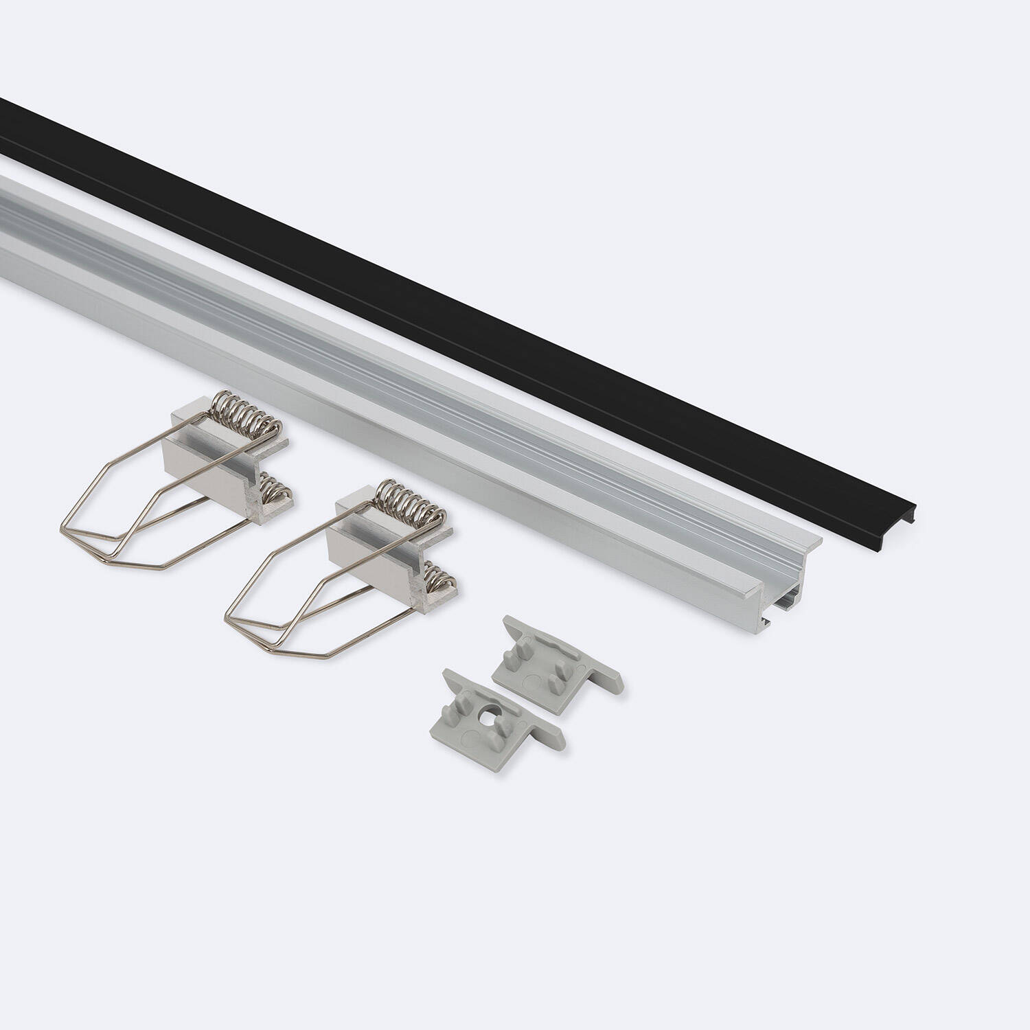 Perfil Aluminio Empotrable con Clips y Tapa Continua para Tiras LED hasta 12 mm con Tapa Continua