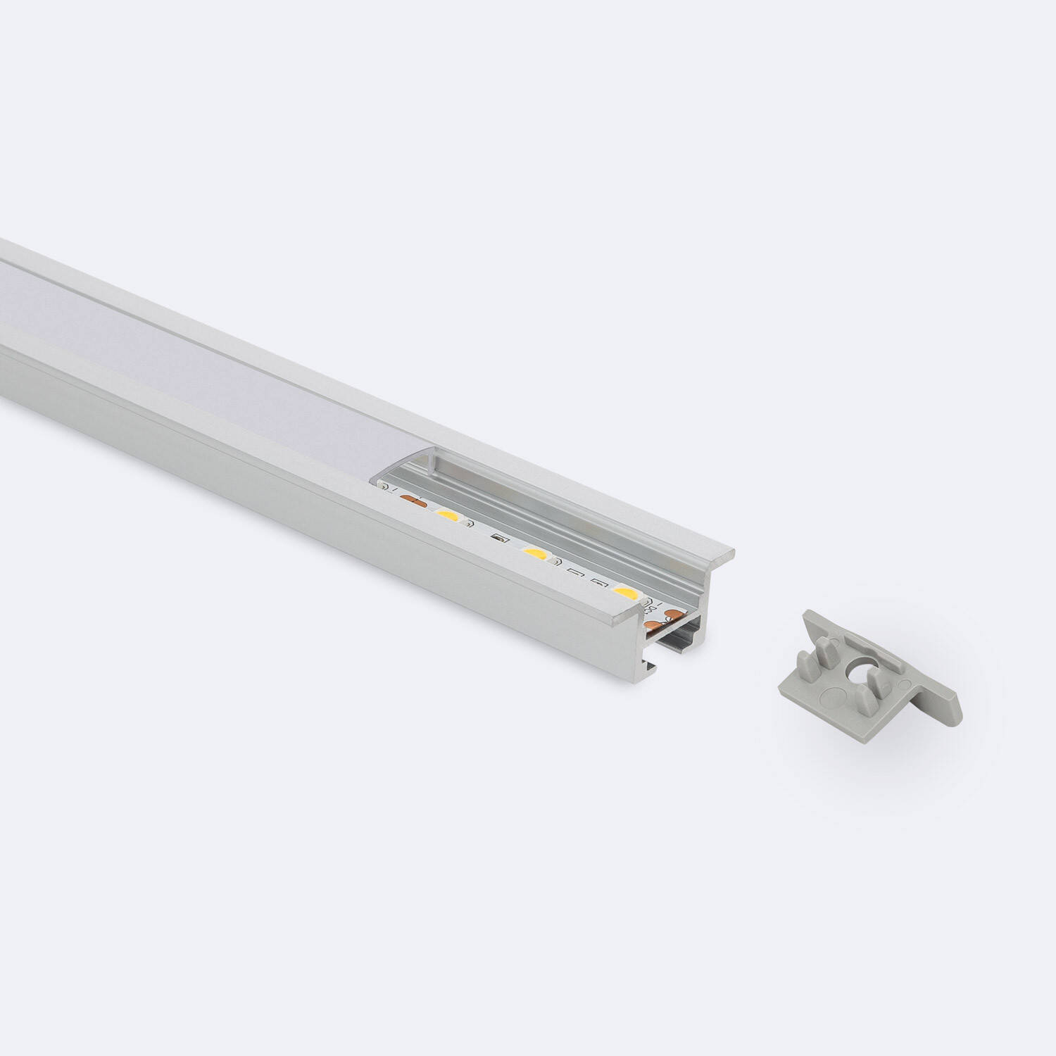 Perfil Aluminio Empotrable con Clips y Tapa Continua para Tiras LED hasta 12 mm con Tapa Continua