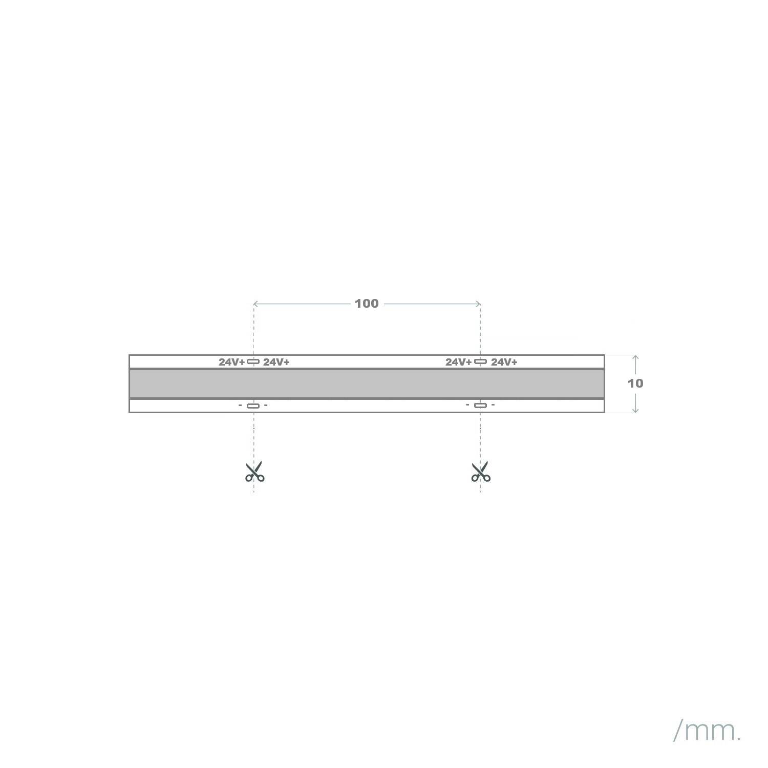 Tira LED 24V COB 320 LED/m Bobina 20m 11W/m 1100lm/m Ancho 8mm Corte 10cm IP20 CRI90