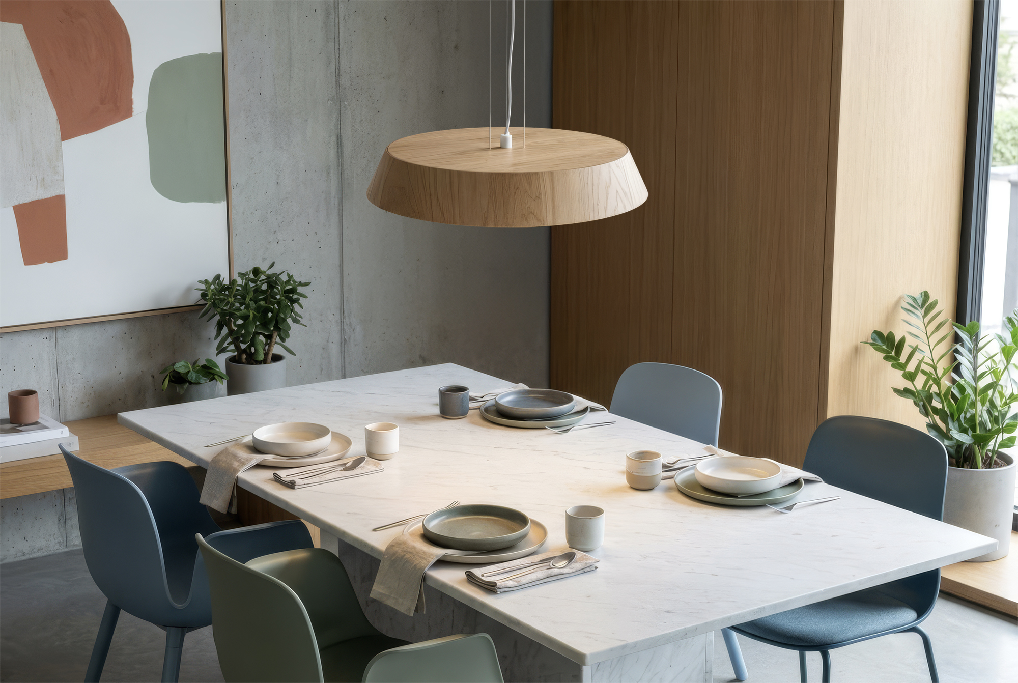 Cora Colgante Ø610mm Haya/Blanco Texturado, LED 50W 4750lm, CRI90 CL.I, 2700K-3000K Slide Switch, Dim. Triac, ON-DEMAND **
