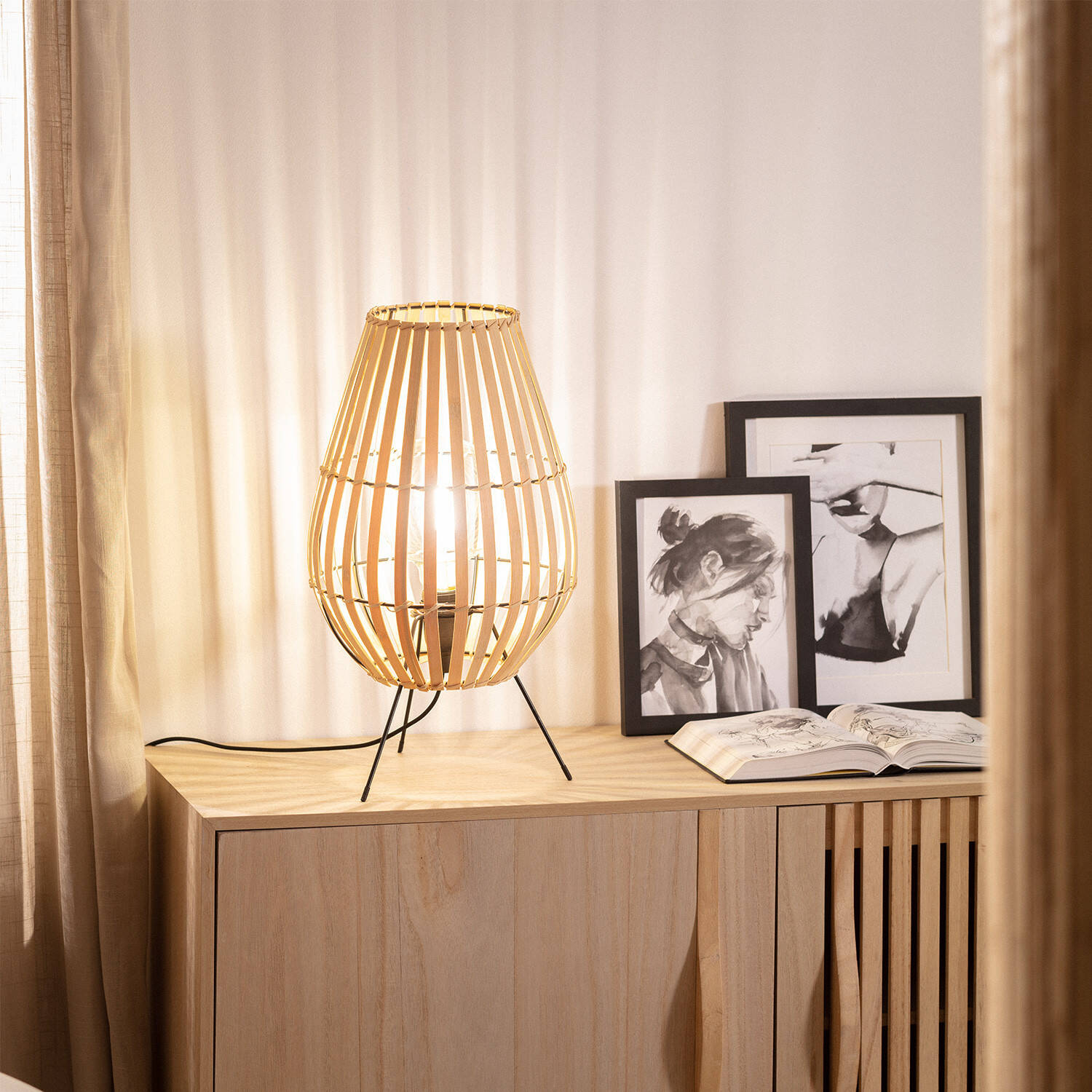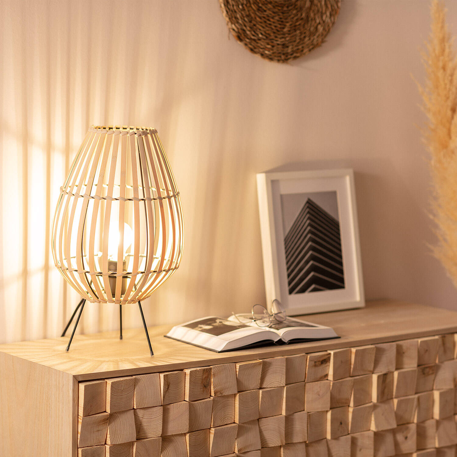 La lámpara de mesa Bambú Atamach destaca por su diseño natural y elegante, fabricado en bambú que aporta calidez y un toque artesanal a cualquier espacio interior. Su estructura ligera y abierta permite un juego de luces y sombras que crea ambientes acogedores y únicos. Compatible con bombillas E27 de hasta 40 W (no incluida), ofrece una iluminación funcional y decorativa. Con protección IP20 y certificaciones CE, RoHS y UKCA, garantiza seguridad y calidad. Su base metálica en negro aporta estabilidad y contraste, mientras que su rango de temperatura de uso entre -20 °C y 50 °C asegura durabilidad. Ideal para salones, dormitorios o zonas de lectura, combina estilo y funcionalidad con una garantía de 3 años.