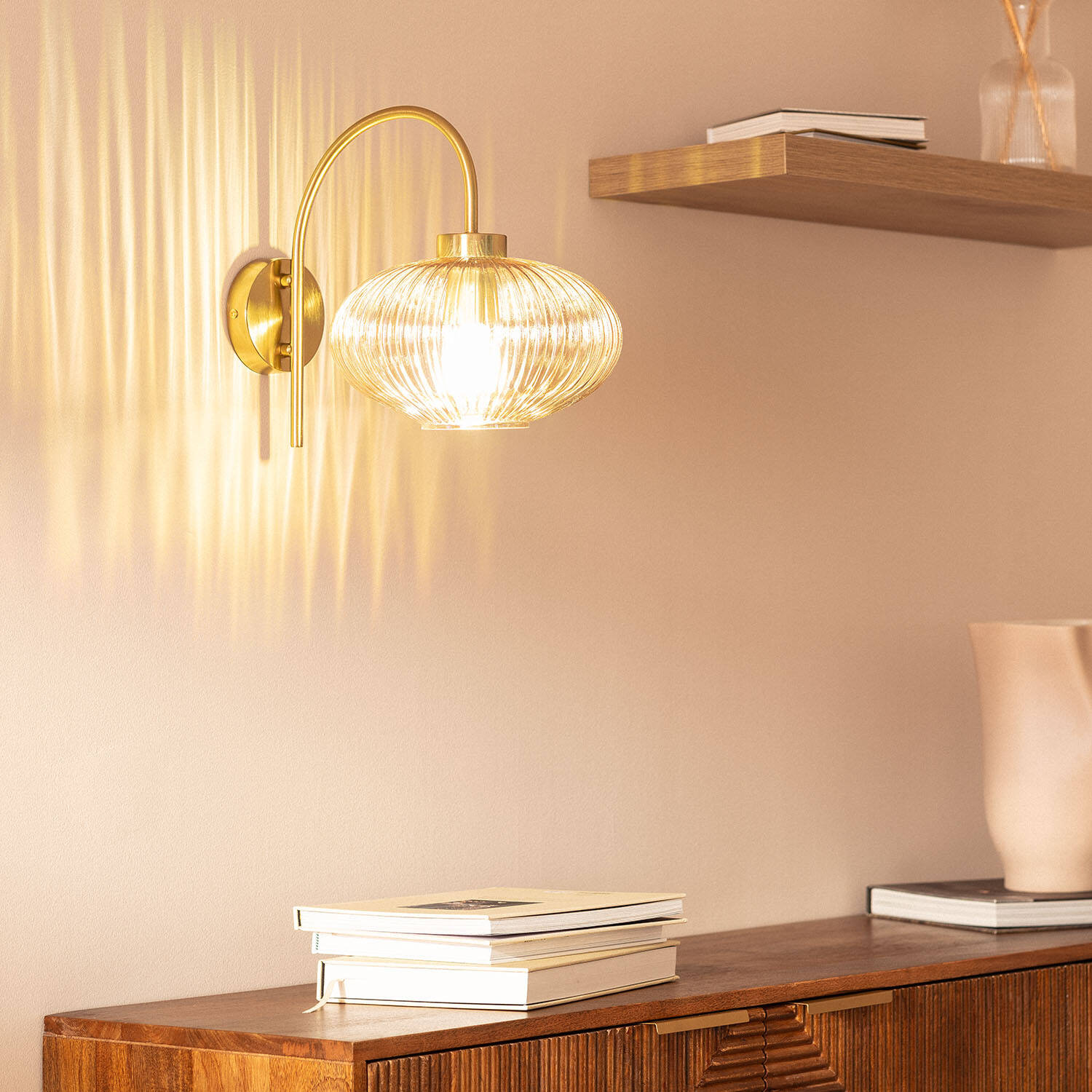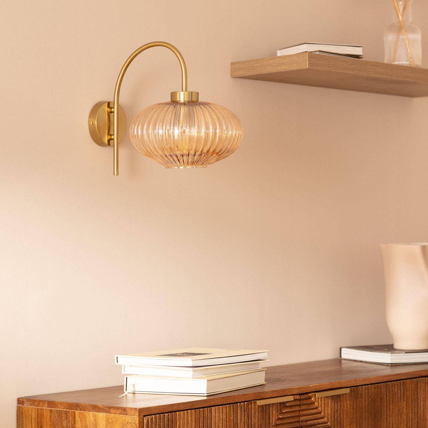 La lámpara de pared Basile combina elegancia y funcionalidad con un diseño sofisticado en metal y cristal ámbar. Su estructura curva en acabado dorado sostiene una tulipa de cristal estriado que aporta un toque vintage y cálido a cualquier espacio interior. Compatible con bombillas E27 de hasta 20W, ofrece una iluminación suave y acogedora, ideal para salones, dormitorios o pasillos. Con protección IP20, está diseñada para uso en interiores y soporta temperaturas de entre -20 °C y 50 °C. Además, cuenta con certificaciones CE y RoHS que garantizan su calidad y seguridad. Su instalación en superficie y garantía de 3 años la convierten en una opción práctica y duradera para decorar con estilo.