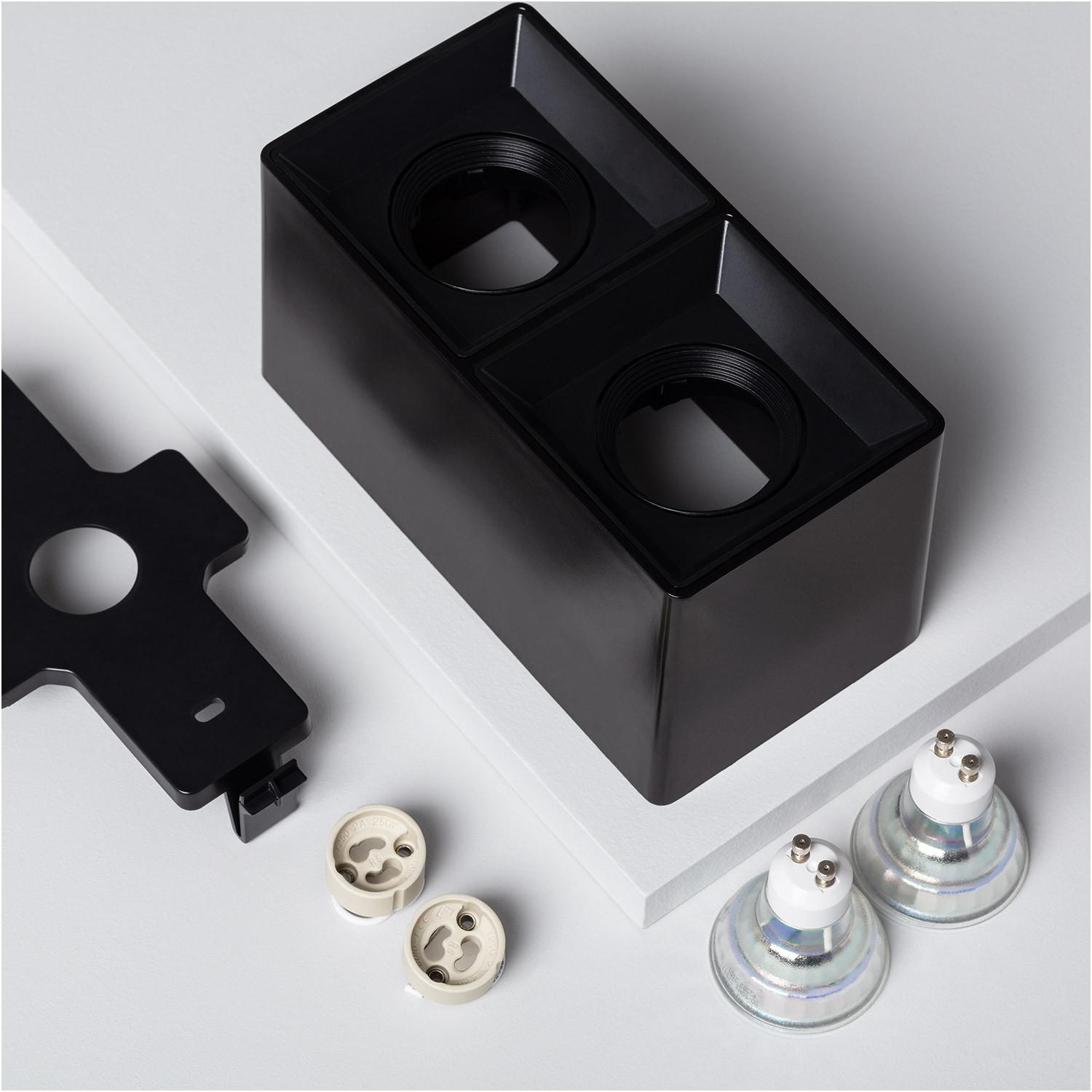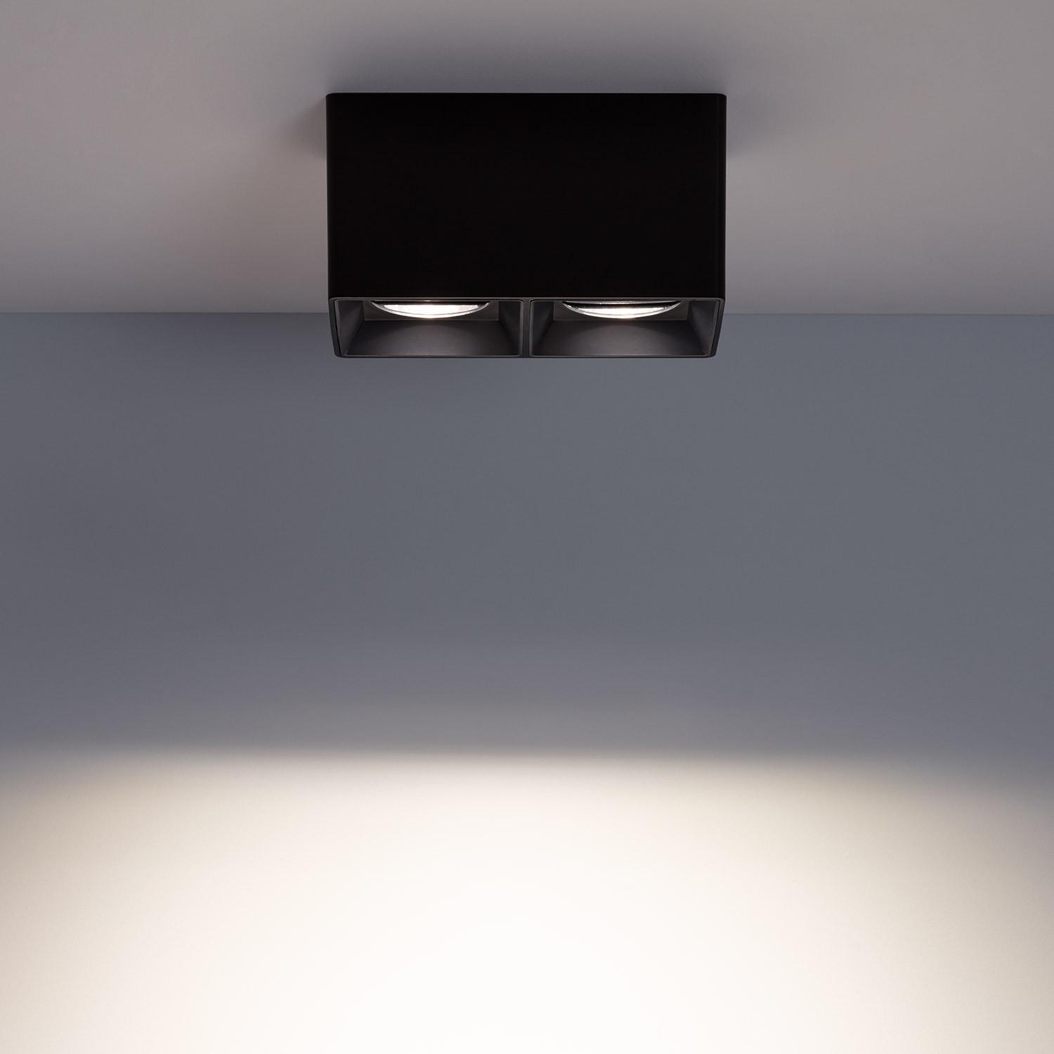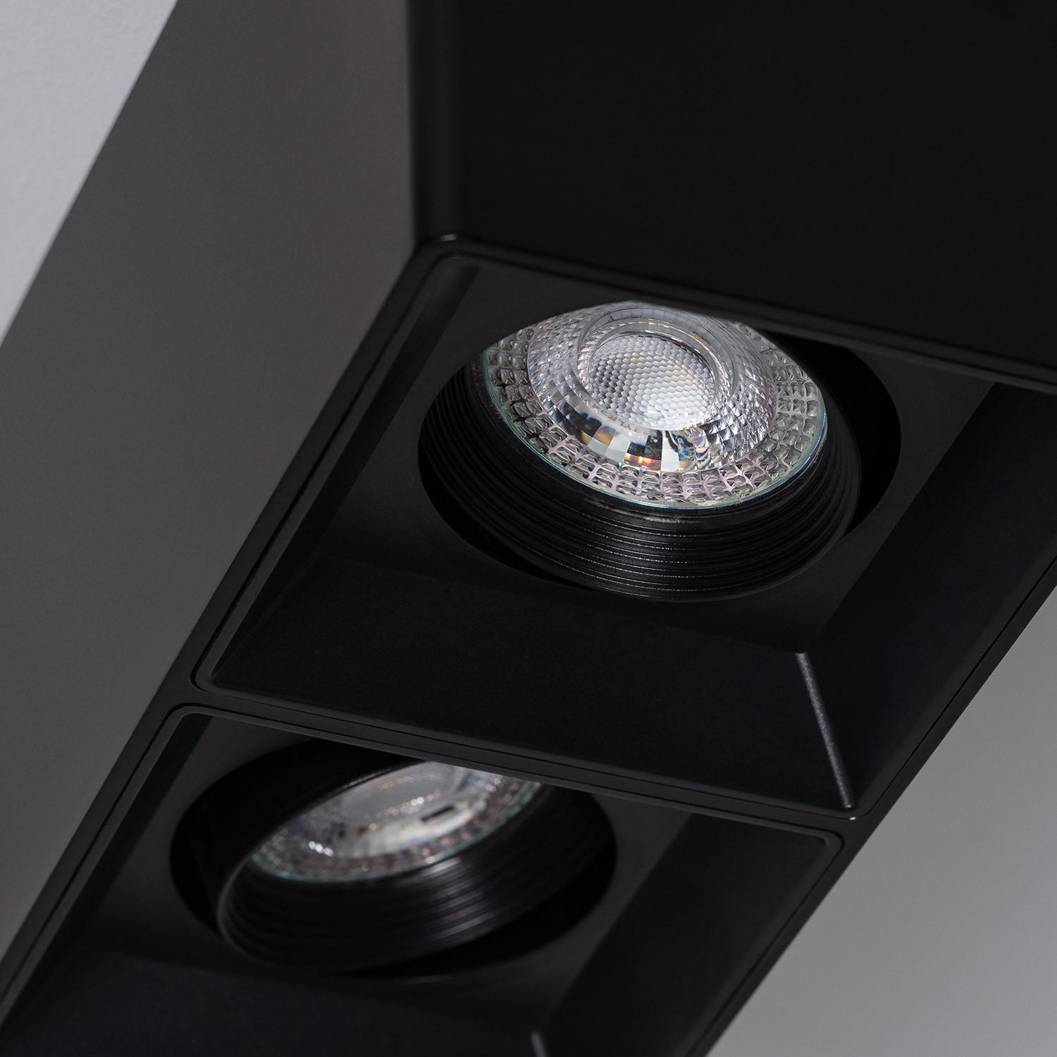 Aplique de Techo Cuadrado Doble Negro con Bombilla GU10 Space