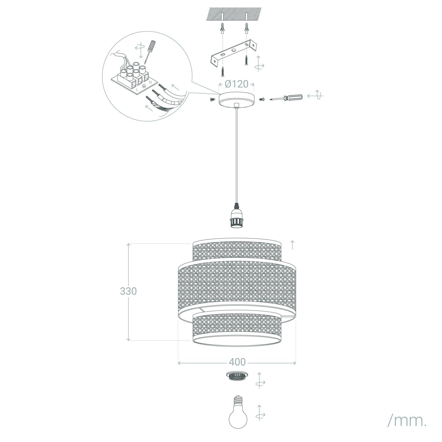La lámpara colgante Ratán Huela Triplo destaca por su diseño natural y elegante, elaborado en ratán con detalles en negro que aportan un toque moderno y sofisticado. Su estructura de tres niveles entrelazados crea un efecto visual único, ideal para ambientes interiores que buscan calidez y estilo. Compatible con bombillas E27 de hasta 40W, esta lámpara ofrece una iluminación ambiental acogedora, perfecta para salones, comedores o espacios de descanso. Con certificaciones CE, RoHS y UKCA, garantiza seguridad y calidad. Además, su protección IP20 la hace adecuada para interiores, soportando temperaturas de -20 °C a 50 °C. Su instalación colgante aporta funcionalidad y un punto focal decorativo en cualquier estancia.