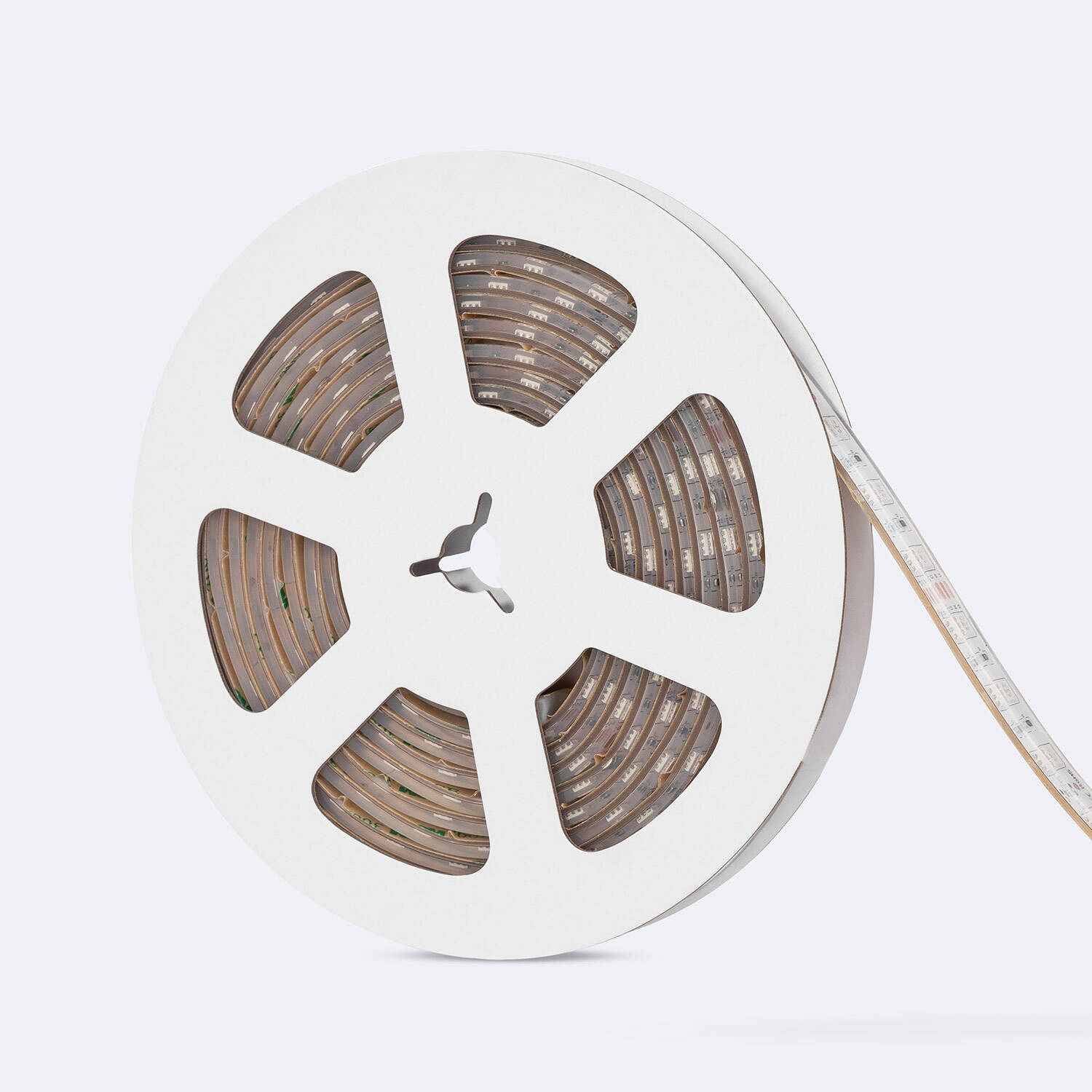 La tira LED 24V RGB SMD de 5 metros ofrece una iluminación versátil y eficiente con 60 LEDs por metro y una potencia de 10W/m. Su diseño flexible y ancho de 12 mm permite cortes cada 10 cm para adaptarse a cualquier proyecto. Fabricada con material PCB y protegida con silicona flexible, cuenta con un grado de protección IP68, ideal para uso en interiores y exteriores, incluso en condiciones adversas. Funciona en un rango de temperaturas entre -20 °C y 50 °C, garantizando durabilidad y resistencia. Compatible con controladores para regulación de color y brillo, su vida útil alcanza hasta 40,000 horas. Certificada bajo CE, RoHS y UKCA, ofrece calidad y seguridad durante 3 años de garantía.