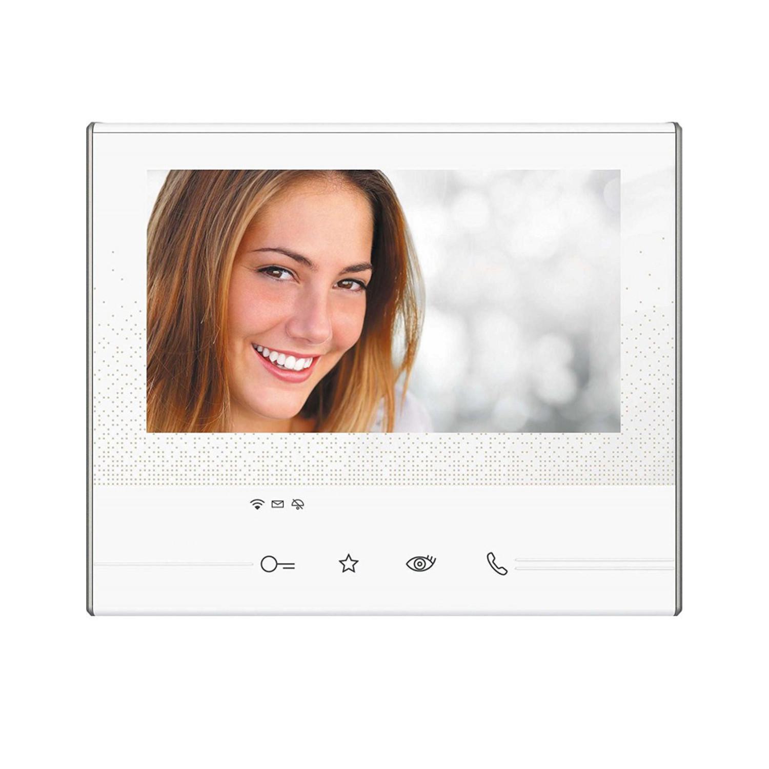 El Kit Videoportero 1 Vivienda 2 Hilos con Placa SFERA NEW y Monitor CLASSE 300 X13E de TEGUI es una solución avanzada para viviendas modernas. Cuenta con un monitor táctil de 7" con conectividad Wi-Fi, que permite gestionar el videoportero desde el móvil e integrar asistentes de voz, ofreciendo un control remoto total. Su diseño elegante en aluminio blanco se adapta a cualquier interior, con instalación empotrable y resistencia a temperaturas de -20 °C a 50 °C. Certificado con CE, RoHS y UKCA, garantiza calidad y seguridad. Ideal para quienes buscan domótica avanzada y comodidad, este kit ofrece funcionalidad premium con garantía de 3 años, combinando tecnología y estilo en un solo dispositivo.