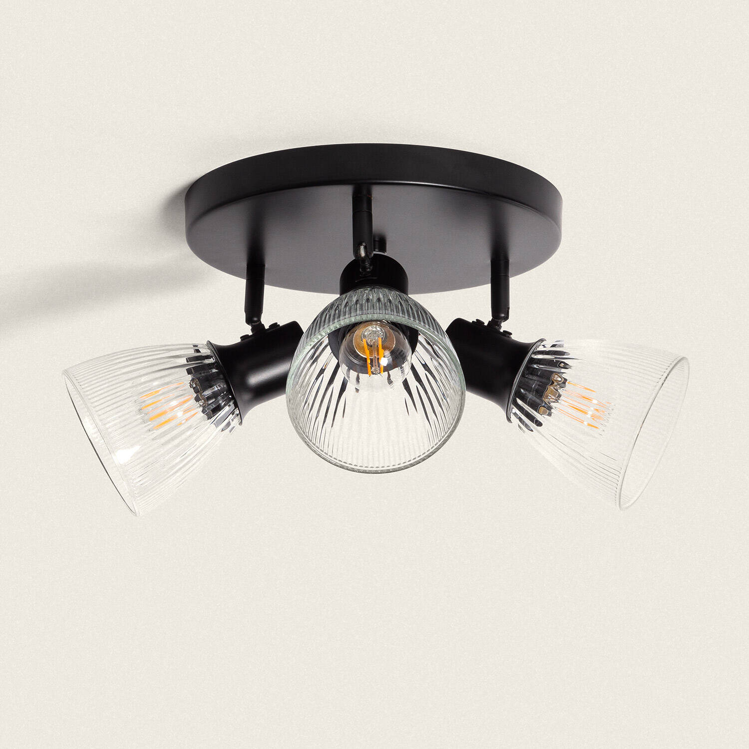 La lámpara de techo Aron combina elegancia y funcionalidad con su estructura de metal negro y pantallas de cristal transparente. Cuenta con tres focos orientables que permiten dirigir la luz según tus necesidades, proporcionando una iluminación versátil y eficiente para interiores. Compatible con bombillas E27 de hasta 40 W, ofrece un ambiente cálido y acogedor. Su diseño robusto soporta temperaturas de trabajo desde -10 °C hasta 65 °C, garantizando durabilidad y resistencia. Además, cuenta con certificaciones CE, RoHS y UKCA, asegurando calidad y seguridad. Ideal para cualquier estancia, su instalación en superficie es sencilla y rápida. Incluye 3 años de garantía para mayor tranquilidad. Bombillas no incluidas.