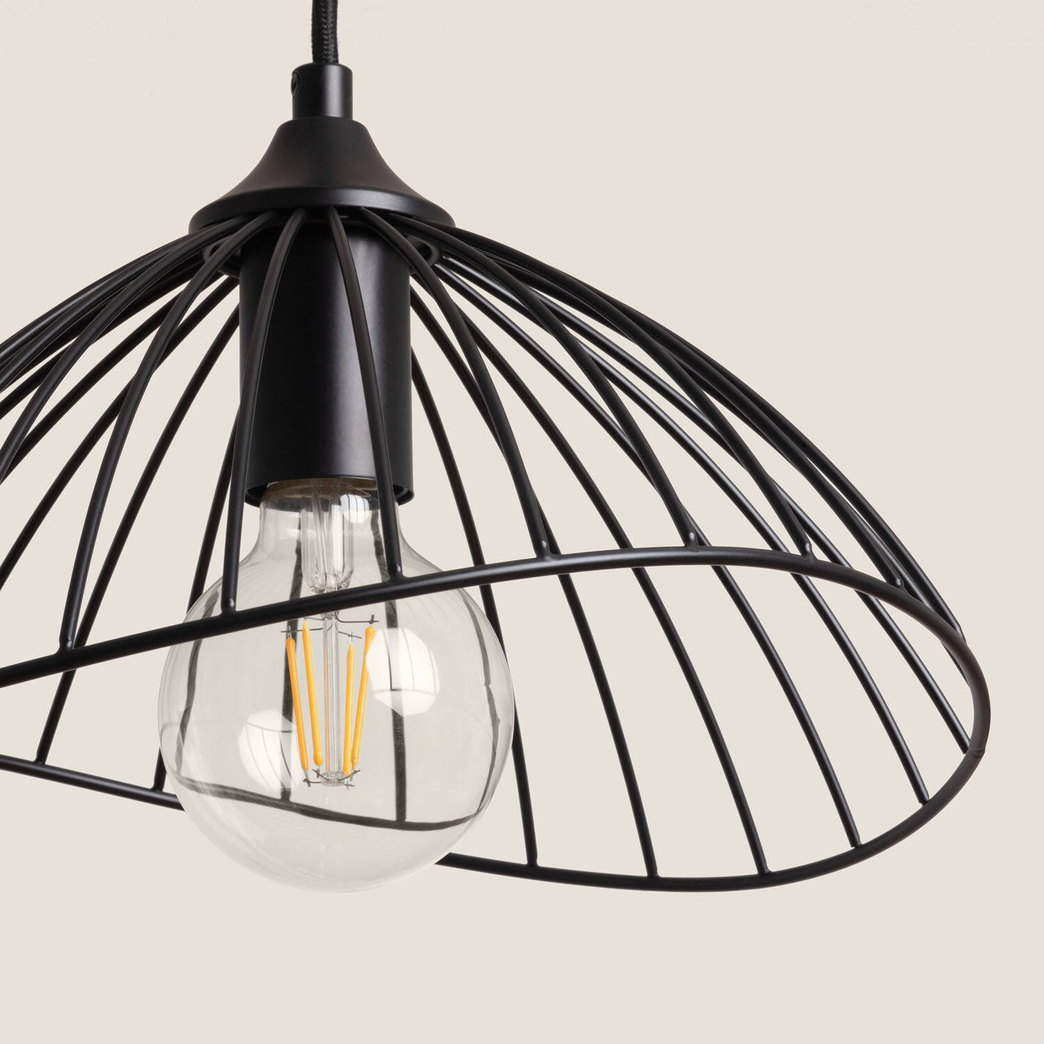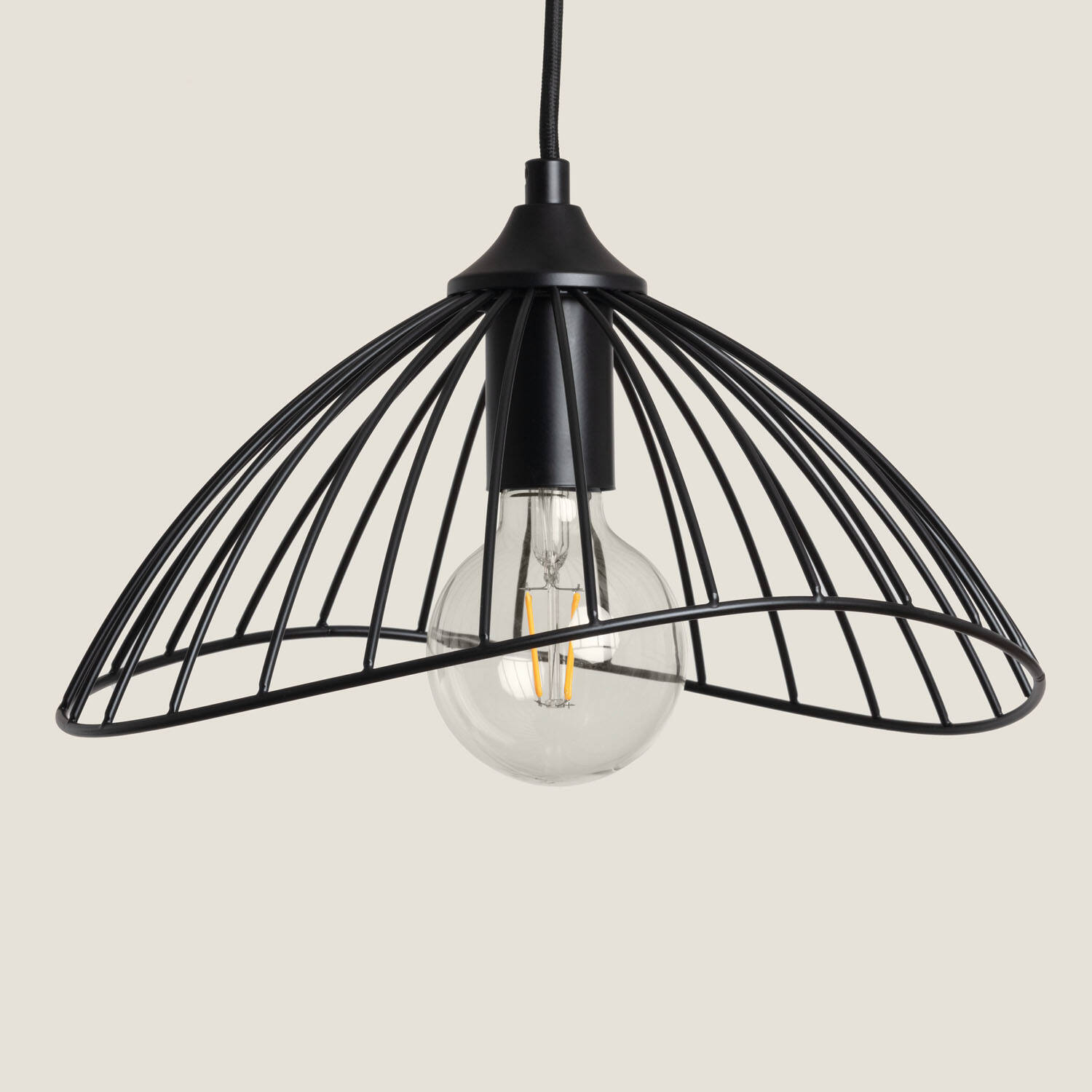 La lámpara colgante Metal Kibanda Alfarb destaca por su diseño industrial y elegante estructura metálica en color negro, ideal para aportar un toque moderno y sofisticado a cualquier espacio interior. Su forma abierta y asimétrica permite una iluminación directa y decorativa, compatible con bombillas E27 (no incluidas) de hasta 20 W. Fabricada en metal resistente, soporta temperaturas de -20 °C a 50 °C y cuenta con certificaciones CE, RoHS y UKCA, garantizando seguridad y calidad. Su instalación colgante la hace perfecta para salones, comedores o zonas de trabajo, combinando funcionalidad y estilo en un solo producto con 3 años de garantía.
