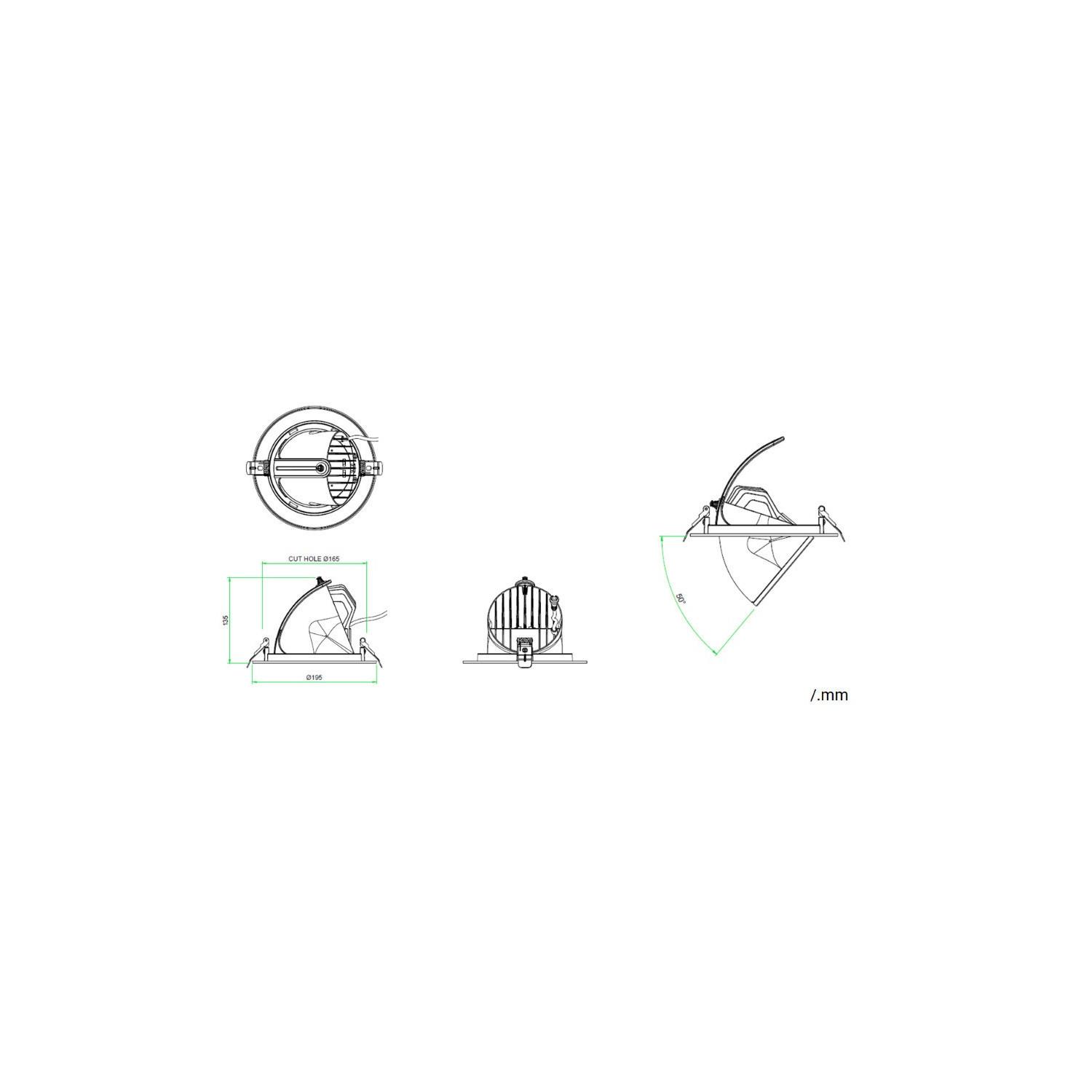 Este downlight LED circular de 38W combina eficiencia y versatilidad con un chip OSRAM de alta calidad y una eficiencia lumínica de 120 lm/W, proporcionando una luminosidad de 4560 lúmenes. Su diseño direccionable permite orientar la luz según las necesidades, mientras que la temperatura de color es seleccionable entre cálido (2700K), neutro (4000K) y frío (6500K), adaptándose a cualquier ambiente. Fabricado en aluminio blanco, cuenta con un ángulo de apertura de 90º y un factor de deslumbramiento UGR 17, garantizando confort visual. Ideal para instalación empotrable en interiores, soporta temperaturas de -20°C a 40°C y ofrece una vida útil de 50.000 horas. Certificado CE, RoHS y UKCA, con garantía de 3 años.